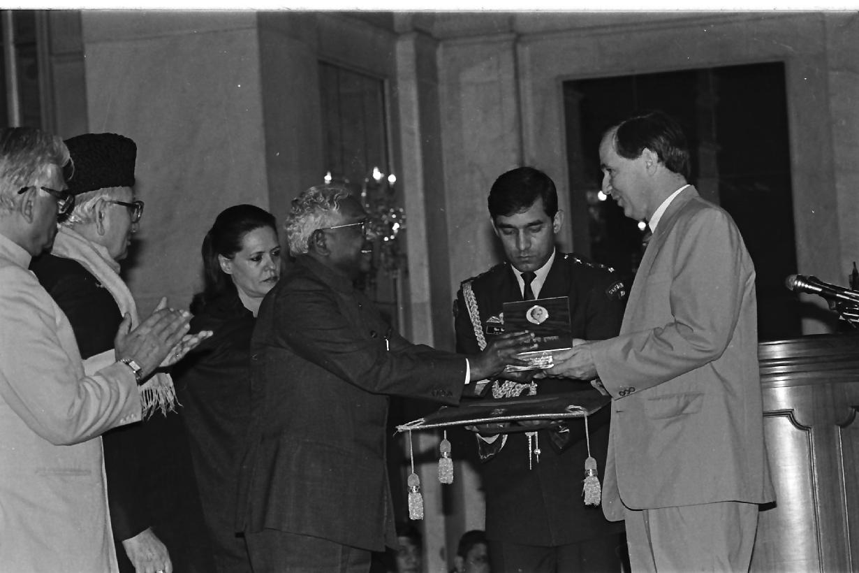 | Caption: | The President of India, Shri K R Narayanan presenting the Indira Gandhi Prize 1996 to Medecins Sans Frontieres at the Ashok Hall of Rashtrapati Bhavan in New Delhi on Nov 19, 1997 |