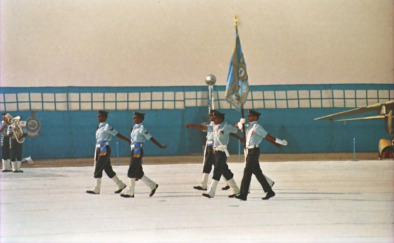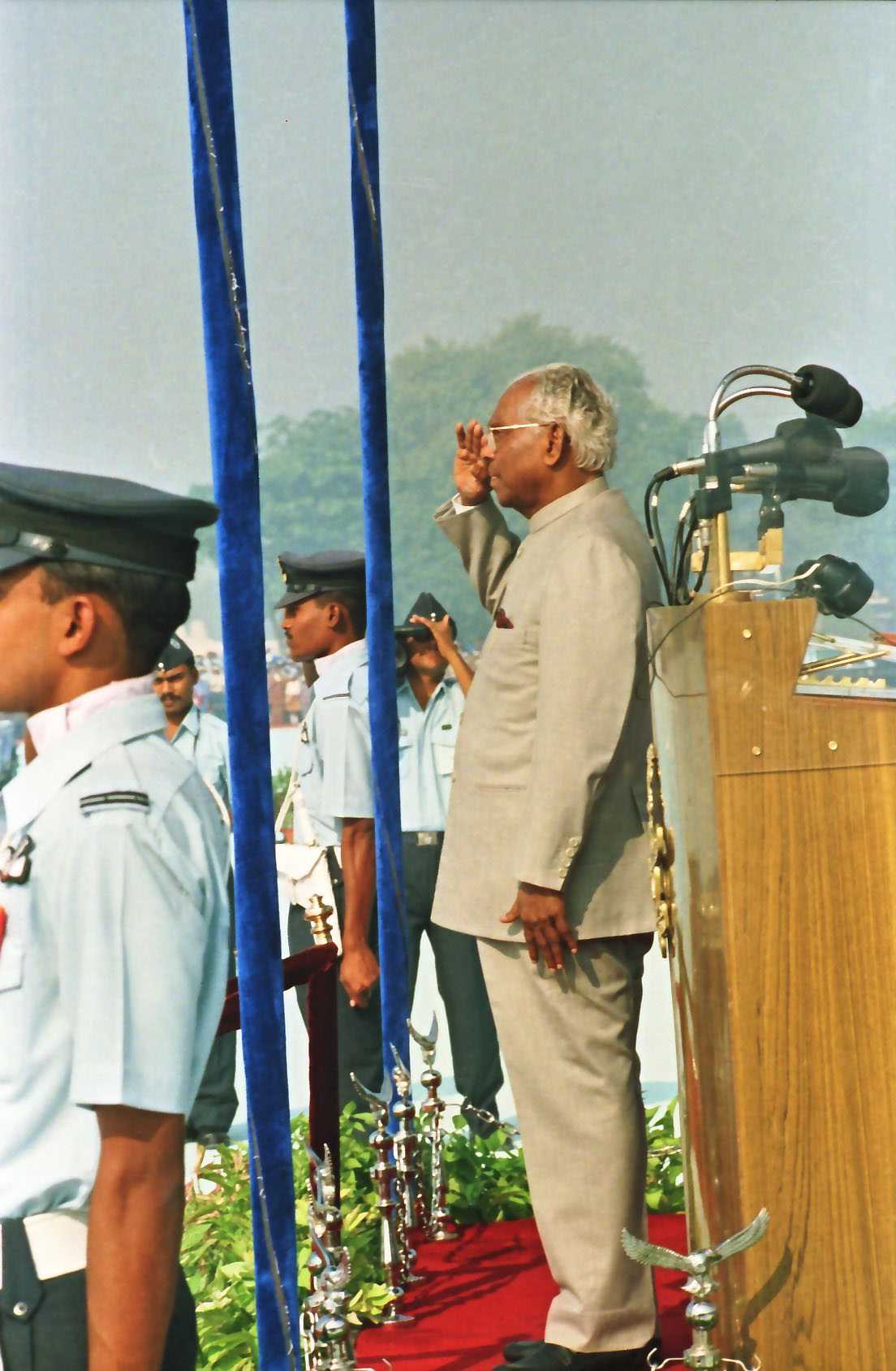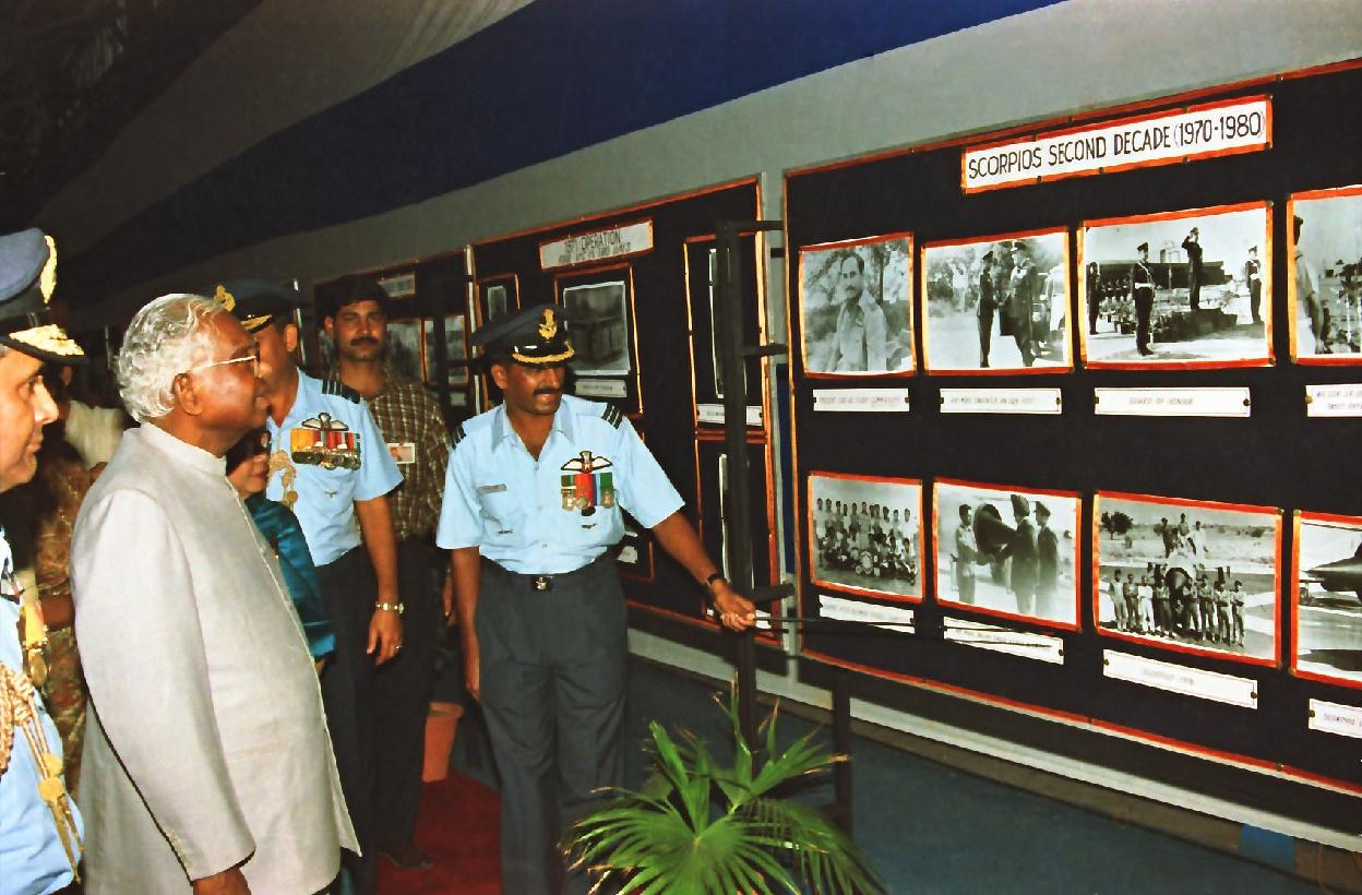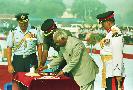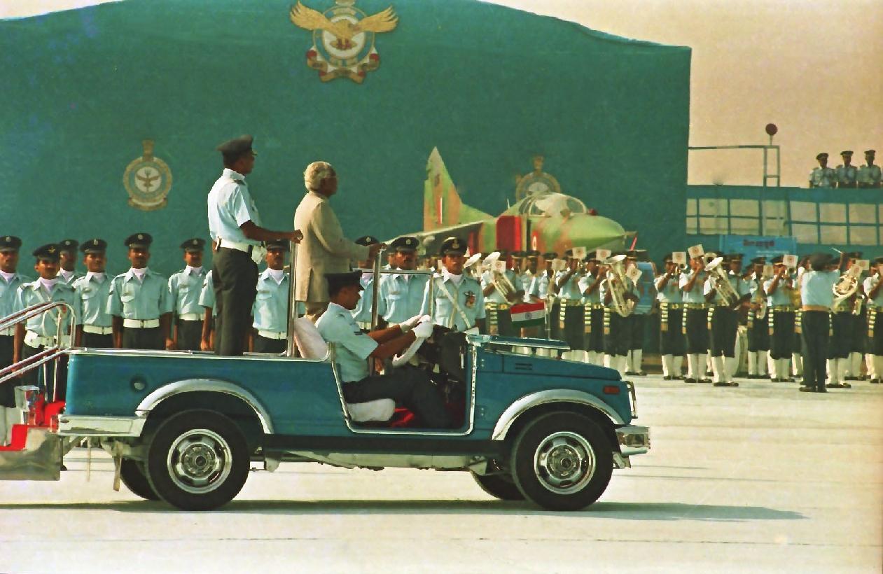 | Caption: | The President of India, Shri K R Narayanan presenting the Standard to 29 SQN and 41 SQN AF at Air Force Station Palam in New Delhi on Nov 07, 1997 |