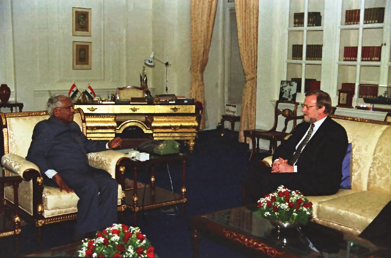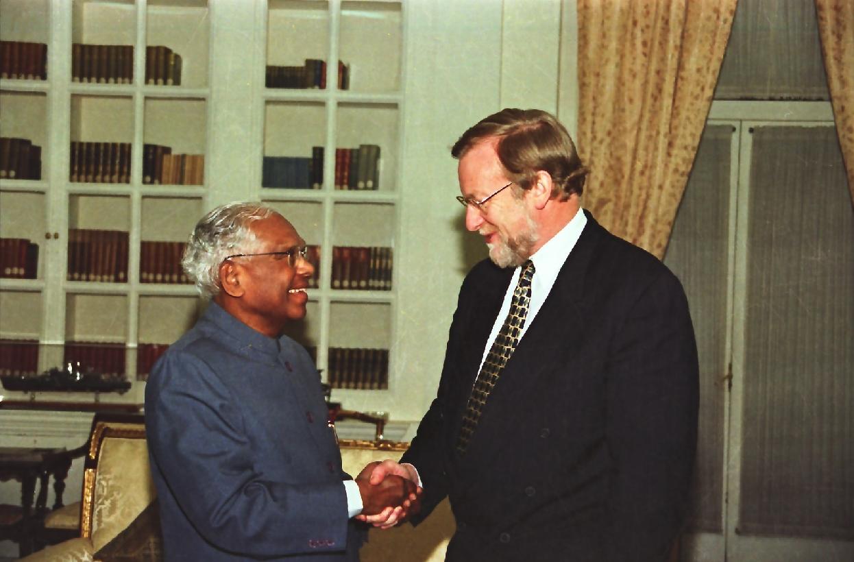 | Caption: | The MP Former Australian Foreign Minister, Mr Gareth Evans with High Commissioner of Australian to India, HE Mr Robert Laurie calling on the President of India, Shri K R Narayanan at Rashtrapati Bhavan in New Delhi on Dec 15, 1998 |