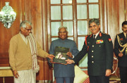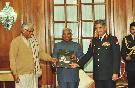 | Caption: | The President of India, Shri K R Narayanan receiving a copy of the Book Quest for Excellence Training the Indian Army brought out by the Army Trg Command HQ at Rashtrapati Bhavan in New Delhi on Dec 18, 1998 |