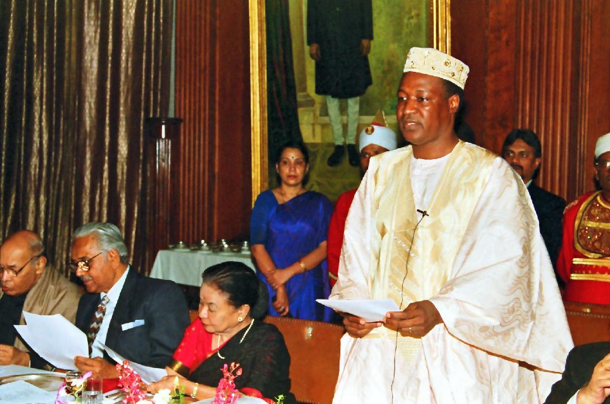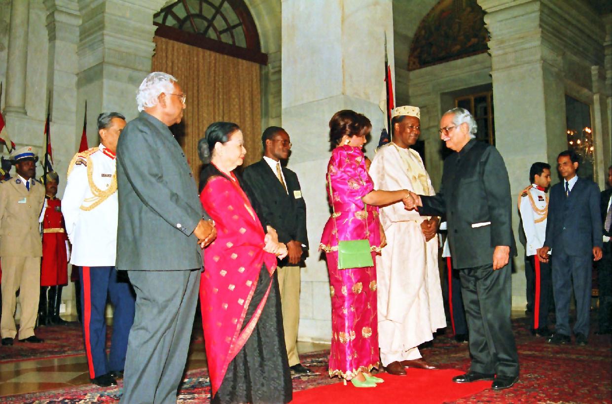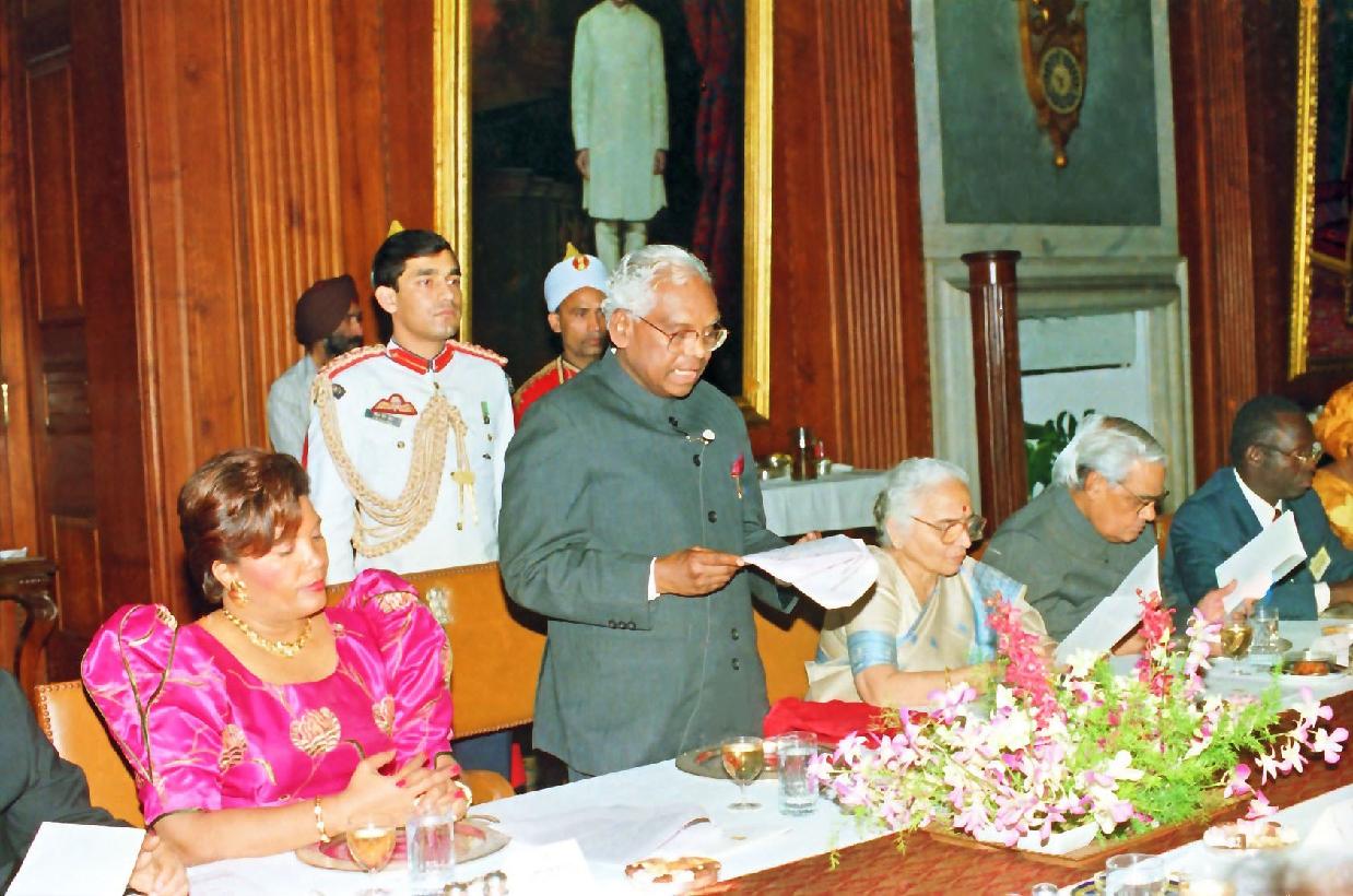 | Caption: | The President of India, Shri K R Narayanan at the Banquet Hosted in Honour of the Distinguished Guests President of the Burkina Faso, HE Mr Blaise Compaore and his Madame Chantal Compaore at the Banquet Hall of Rashtrapati Bhavan in New Delhi on Nov 11, 1997 |