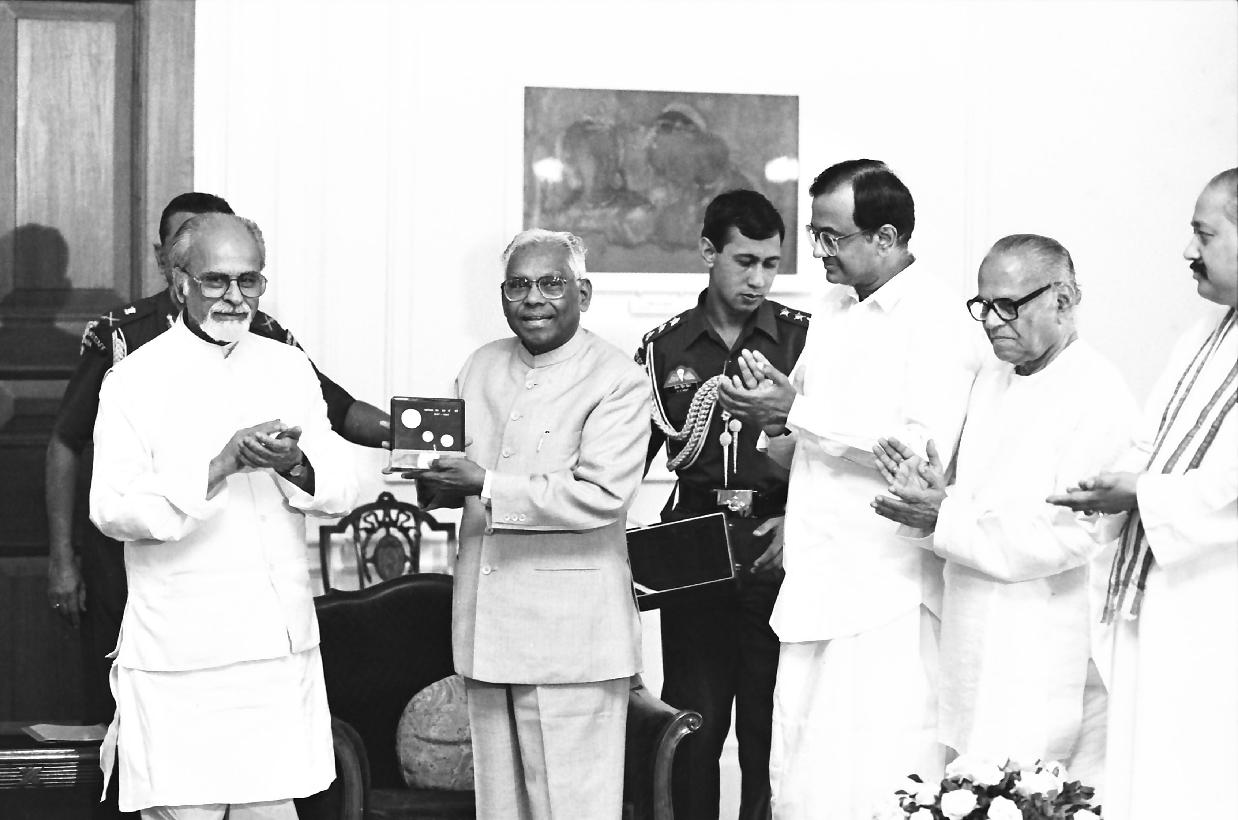 | Caption: | The President of India, Shri K R Narayanan releasing Two Commemorative Coins of Rupees Fifty and Paise Fifty Denominations brought out by the Reserve Bank of India on the occasion of 50th Anniversary of India's Independence at the Morning Room of Rashtrapati Bhavan in New Delhi on Aug 15, 1997 |
