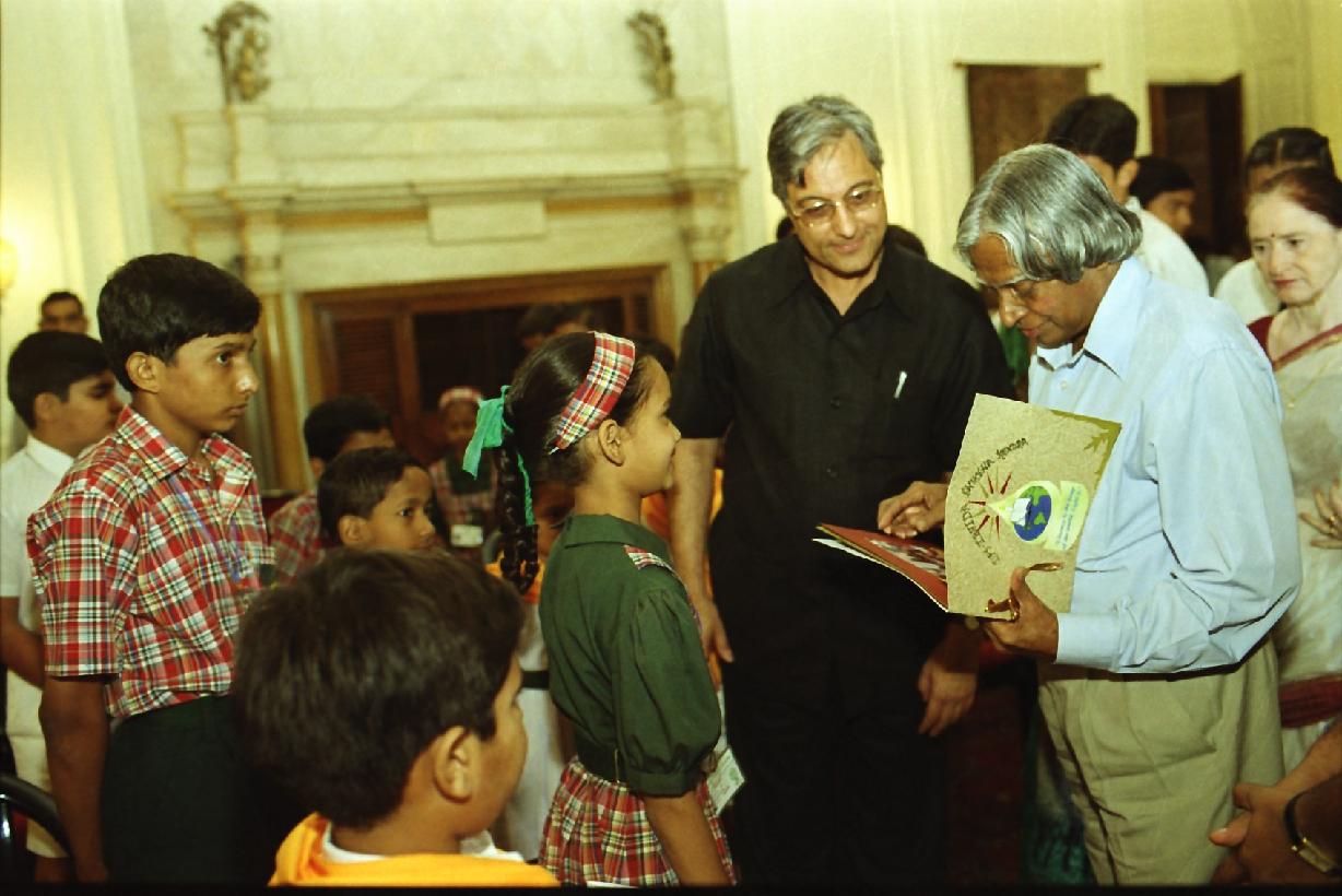 | Caption: | The Students and Teachers from Delhi Public School, Mathura Road, New Delhi and Ibtida Shiksha Kendra calling on the President of India, Dr A P J Abdul Kalam at the Yellow Drawing Room of Rashtrapati Bhavan in New Delhi on Sep 19, 2002 |
