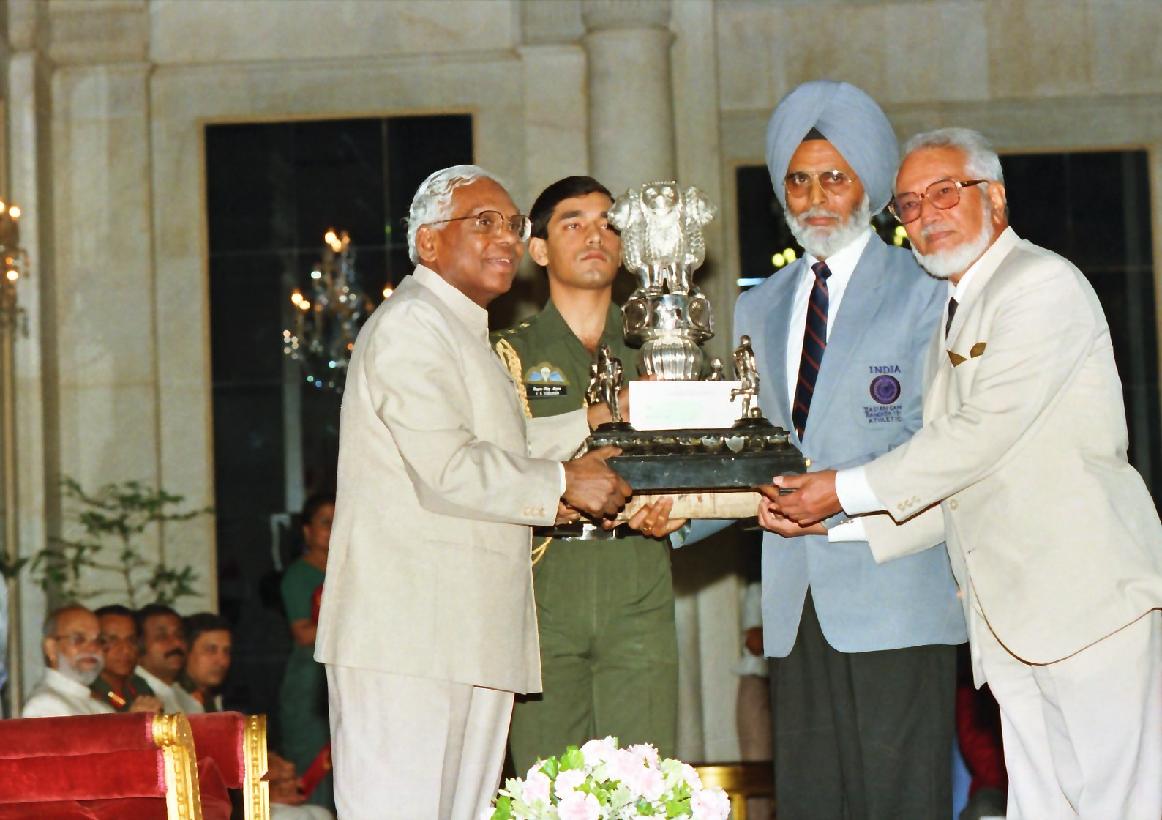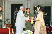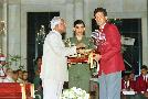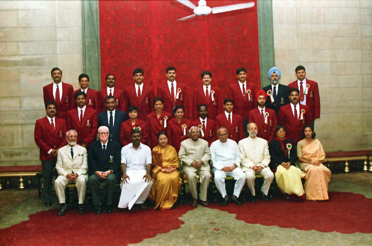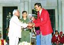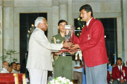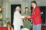 | Caption: | The President of India, Shri K R Narayanan presenting the Rajiv Gandhi Khel Ratna Awards, Dronacharya Awards, Arjuna Awards and Maulana Abul Kalam Azad Trophy at the Ashok Hall of Rashtrapati Bhavan in New Delhi on Aug 29, 1997 |