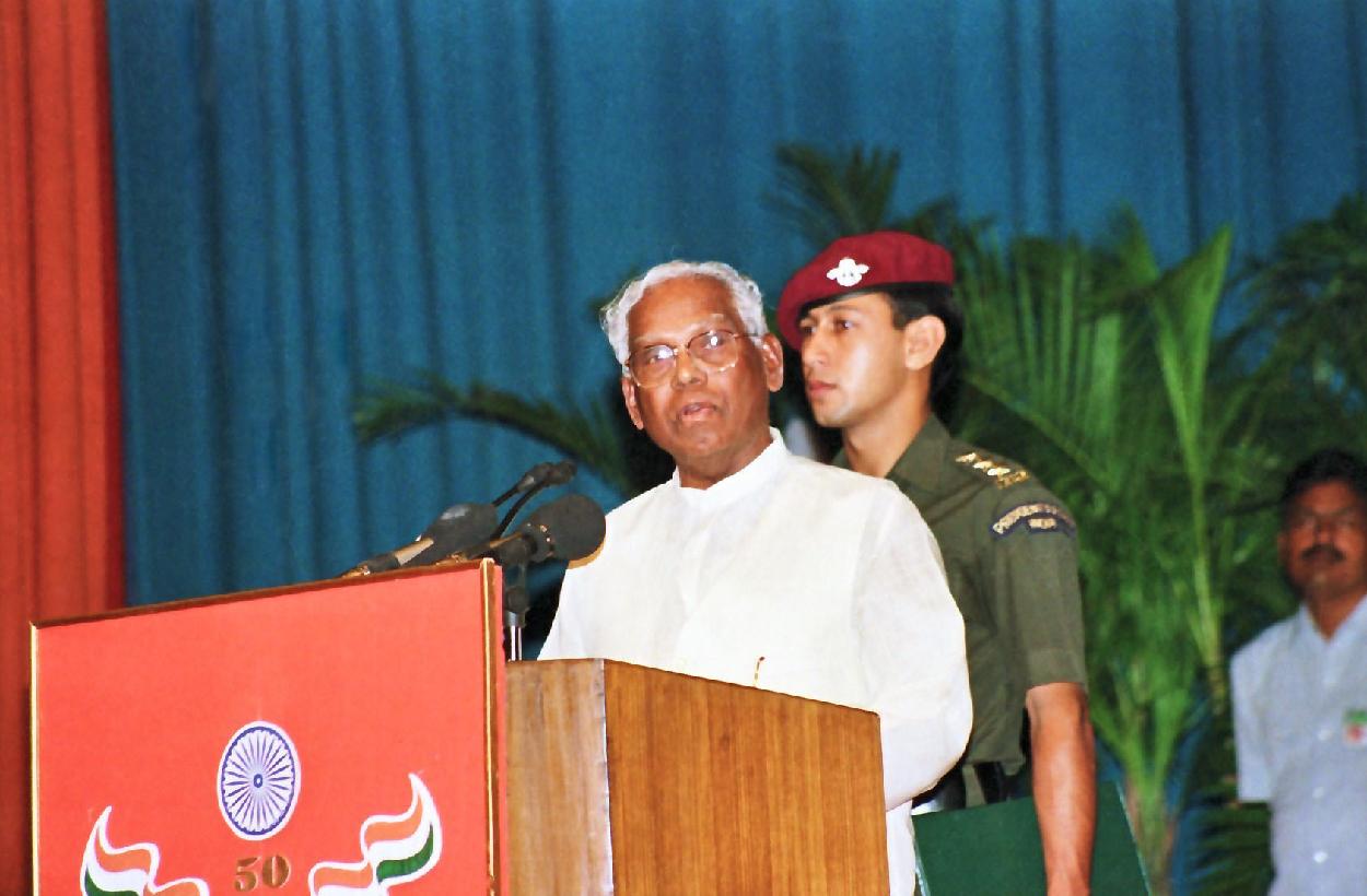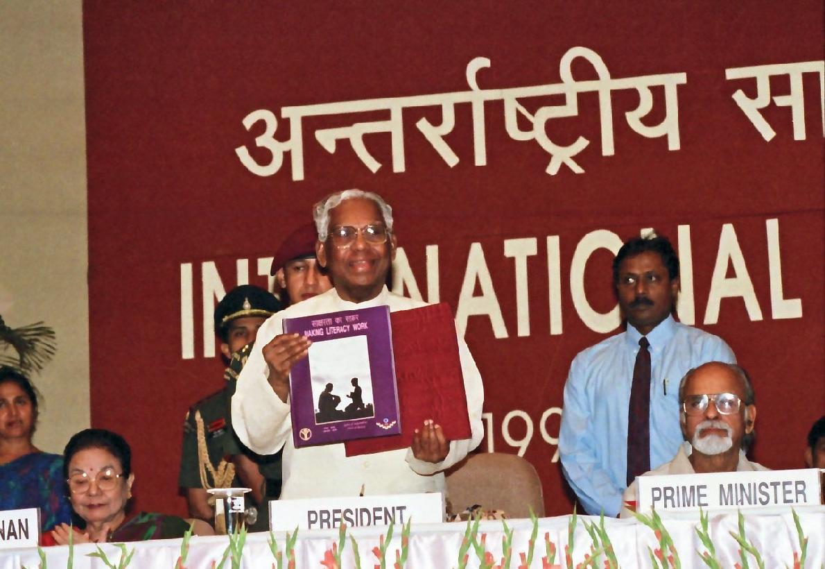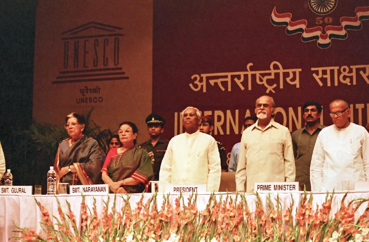 | Caption: | The President of India, Shri K R Narayanan at the 31st International Literacy Day Celebrations at Siri Fort Auditorium in New Delhi on Sep 08, 1997 |