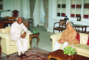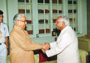 | Caption: | The President of India, Shri K R Narayanan meeting with the Governor of Rajasthan, Shri Bali Ram Bhagat at Rashtrapati Bhavan in New Delhi on Sep 09, 1997 |