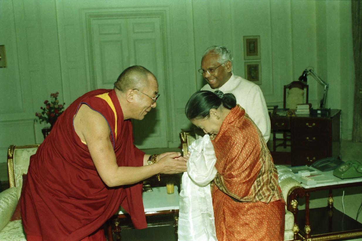 | Caption: | The President of India, Shri K R Narayanan meeting with HH Dalai Lama at Rashtrapati Bhavan in New Delhi on April 12, 1998 |