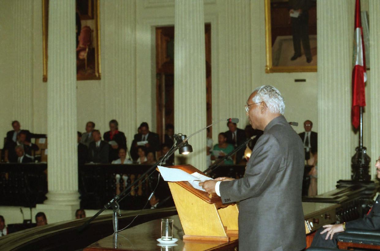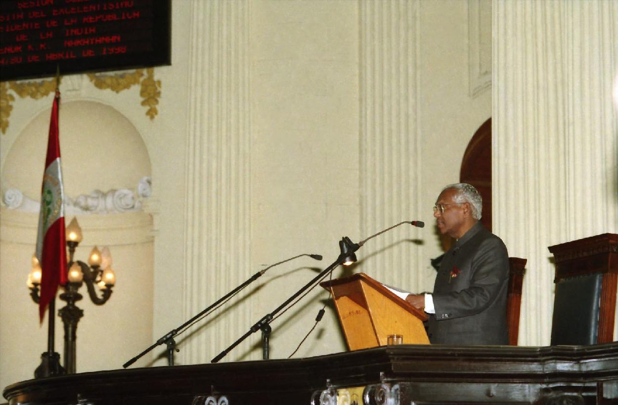 | Caption: | The President of India, Shri K R Narayanan addressing at the Peruvian Congress of Republic (Parliament) at Lima in Peru on April 30, 1998 |