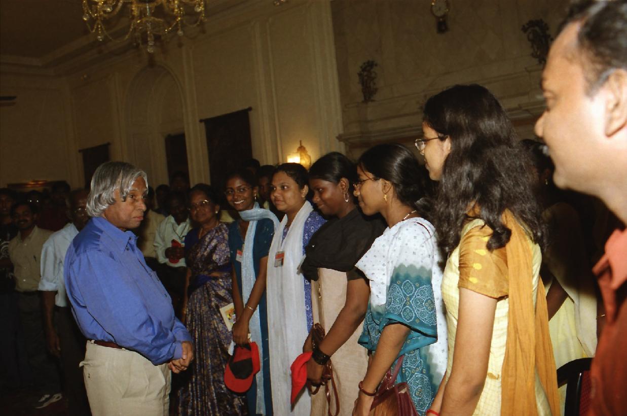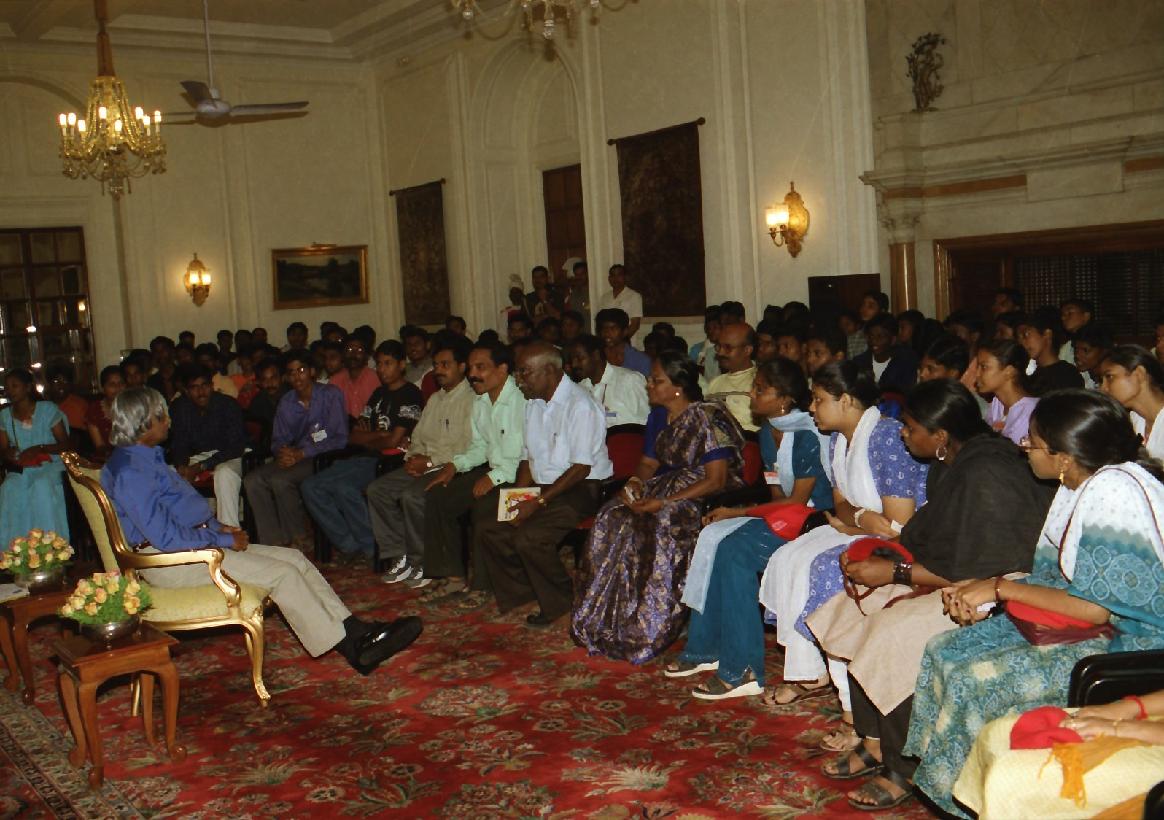 | Caption: | The President of India, Dr A P J Abdul Kalam meeting with the Students and Staff from N N Matric Higher Secondary School, Kottivakkam, Chennai at the Yellow Drawing Room of Rashtrapati Bhavan in New Delhi on Sep 24, 2002 |