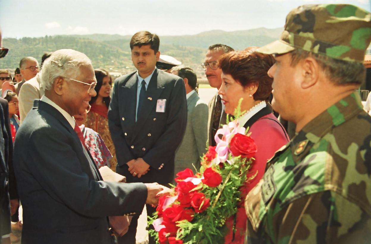 The President of India, Shri K R Narayanan arriving at Cusco Airport in Peru on May 01, 1998