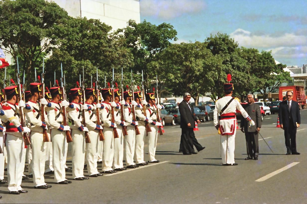 | Caption: | The President of India, Shri K R Narayanan meeting with the President of Brazil, HE Dr Fernando Henrique Cardoso at the Ceremonial welcome at Brasilia in Brazil on May 05, 1998 |