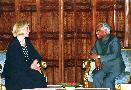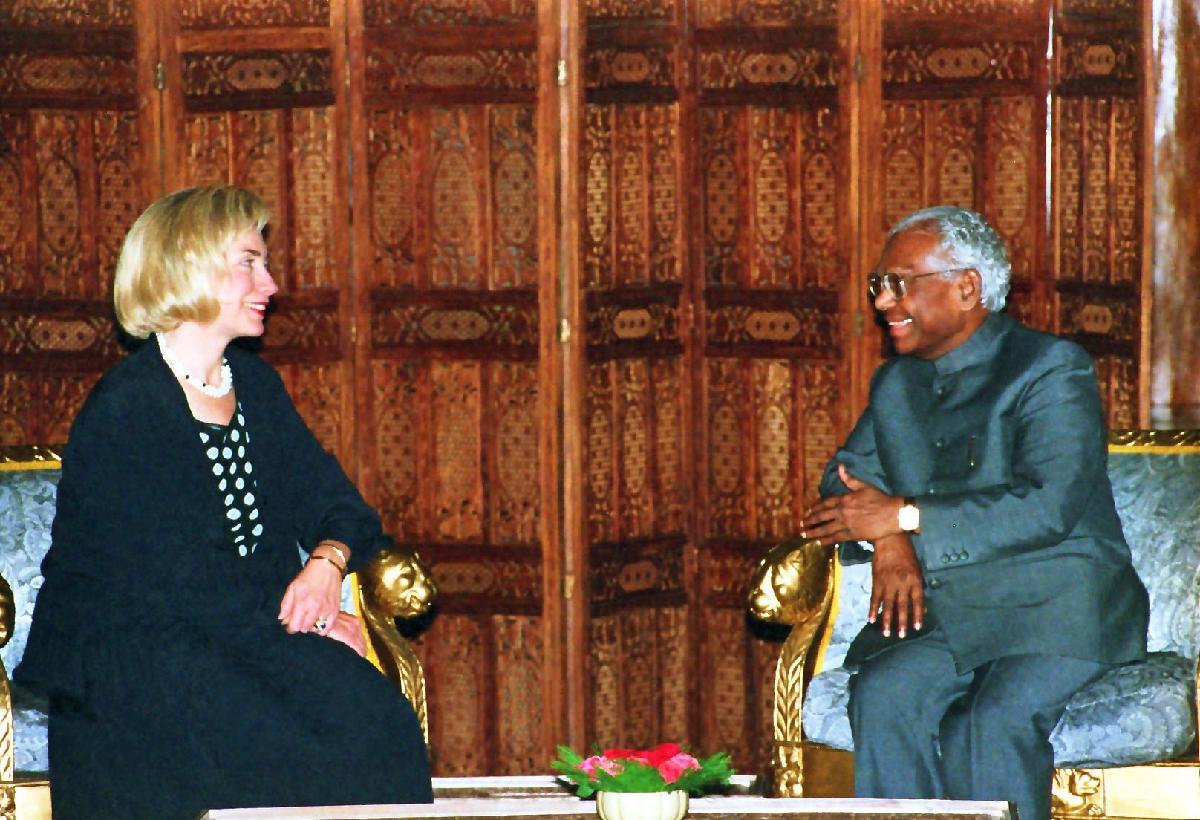 | Caption: | The President of India, Shri K R Narayanan meeting with Mrs Hillary Clinton at Calcutta Raj Bhavan in West Bengal on Sep 13, 1997 |