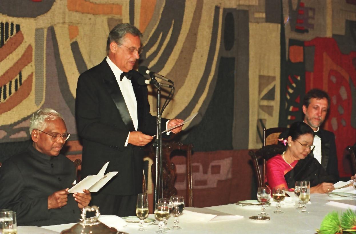 | Caption: | The President of India, Shri K R Narayanan addressing at the Banquet Hosted by the President of Brazil, HE Dr Fernando Henrique Cardoso at Brasilia in Brazil on May 05, 1998 |