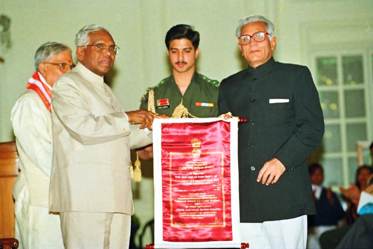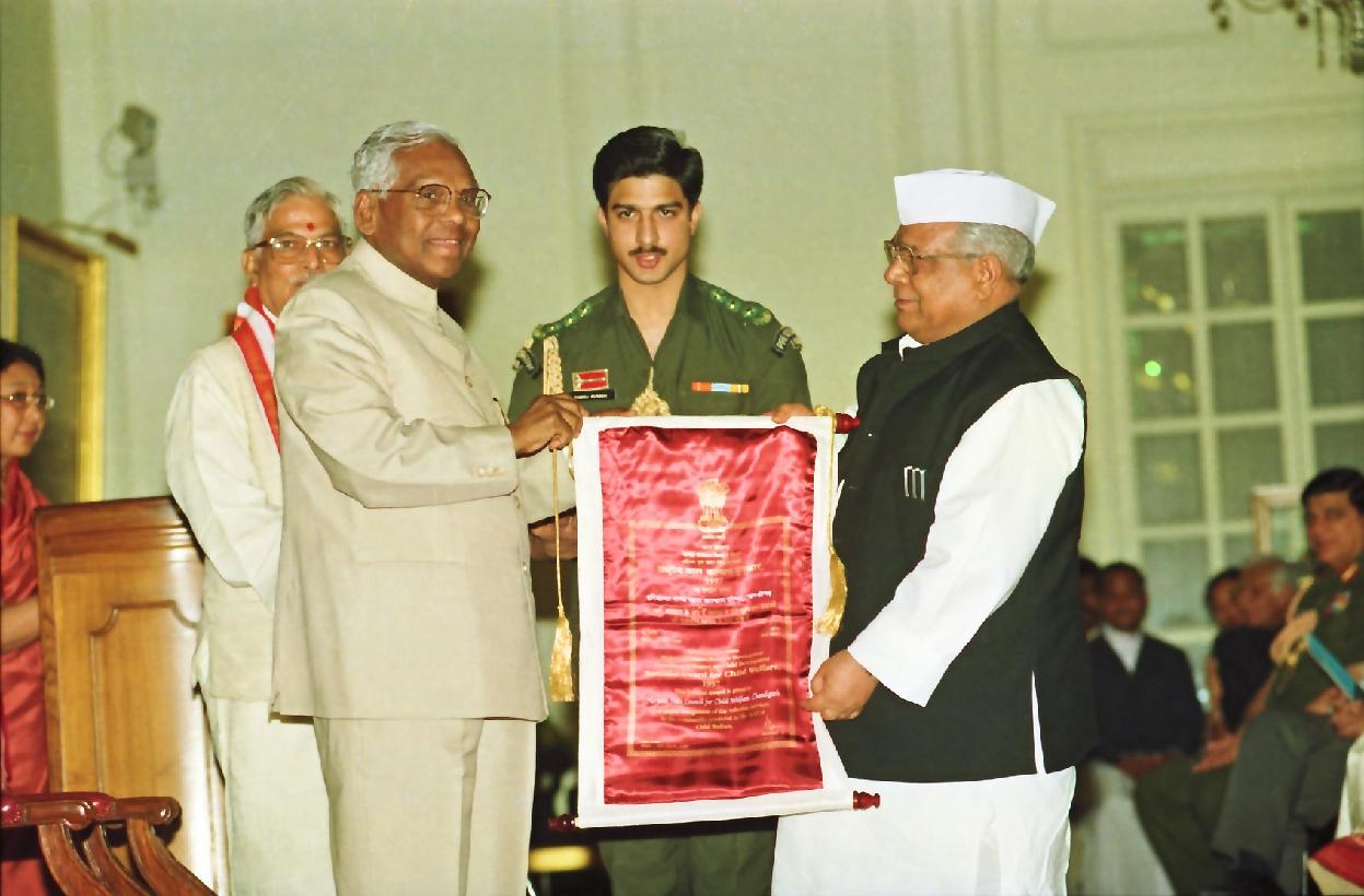 | Caption: | The President of India, Shri K R Narayanan presenting the National Awards for Child Welfare at the Yellow Drawing Room of Rashtrapati Bhavan in New Delhi on March 25, 1998 |
