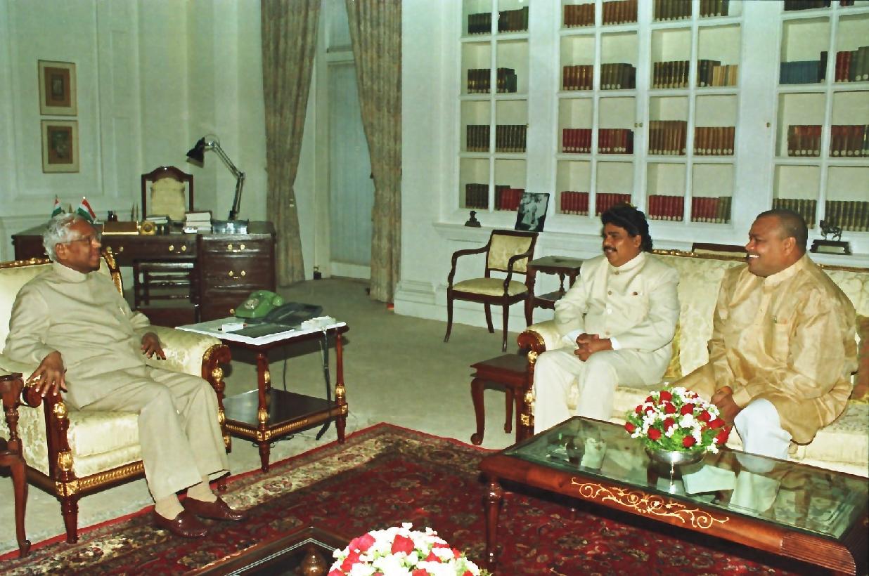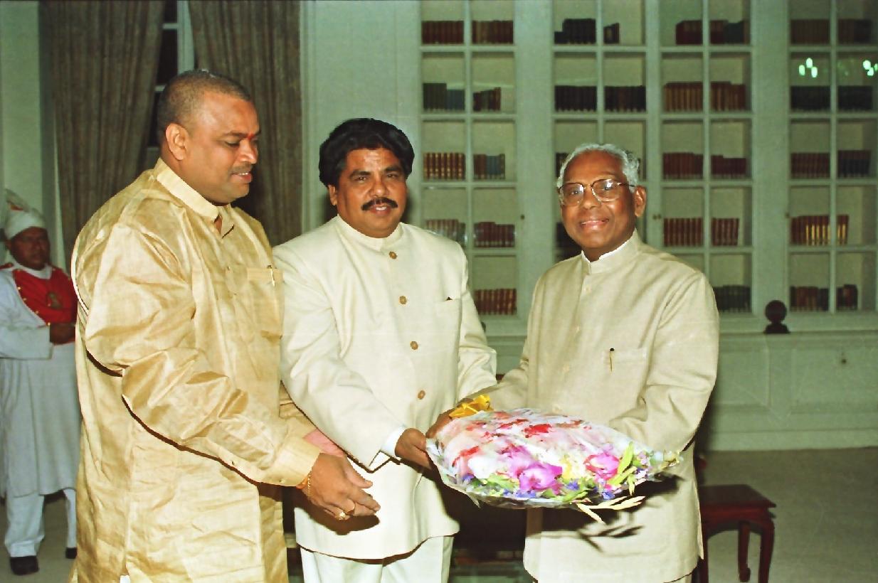 | Caption: | The President of India, Shri K R Narayanan meeting with the Speaker of 12th Lok Sabha, Shri G M C Balayogi at Rashtrapati Bhavan in New Delhi on March 27, 1998 |