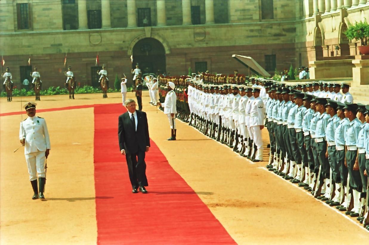 | Caption: | The President of India, Shri K R Narayanan at the Ceremonial Reception of the Governor General of Canada, HE Mr Romeo LeBlanc at the Forecourt of Rashtrapati Bhavan in New Delhi on March 30, 1998 |