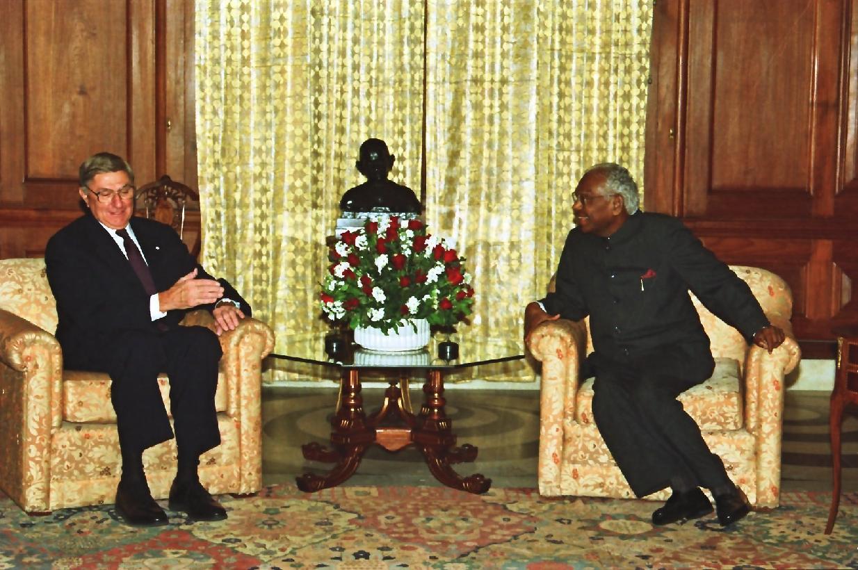 | Caption: | The Governor General of Canada, HE Mr Romeo LeBlanc calling on the President of India, Shri K R Narayanan at the North Drawing Room of Rashtrapati Bhavan in New Delhi on March 30, 1998 |