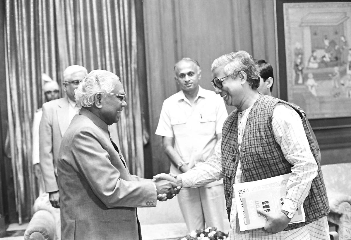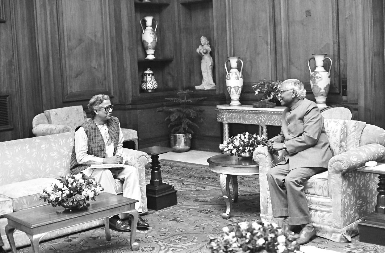 | Caption: | The President of India, Shri K R Narayanan meeting with the Head of the Grameen Bank of Bangladesh, Prof Mohd Yunus at Rashtrapati Bhavan in New Delhi on Aug 07, 1997 |