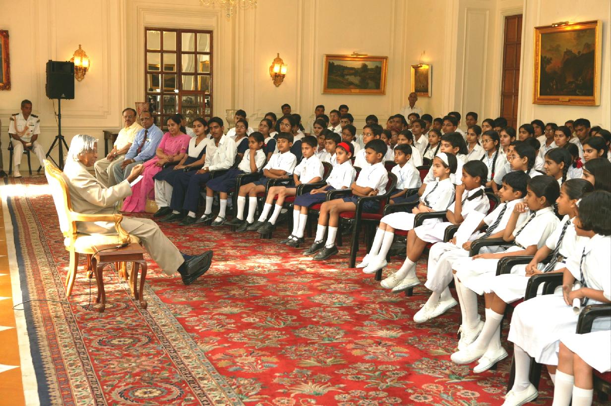 | Caption: | The Students from Kendriya Vidyalaya Gole Market calling on the President of India, Dr A P J Abdul Kalam at the Yellow Drawing Room of Rashtrapati Bhavan in New Delhi on April 20, 2004 |