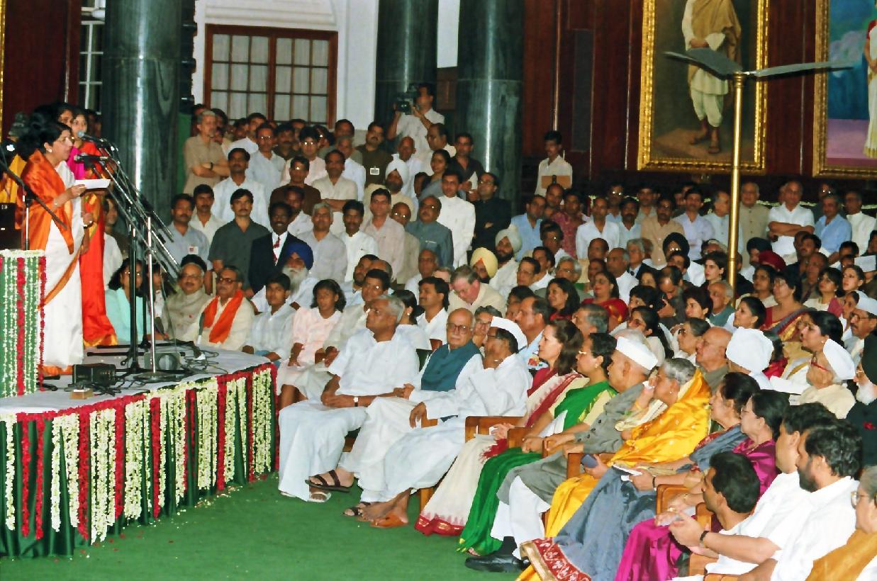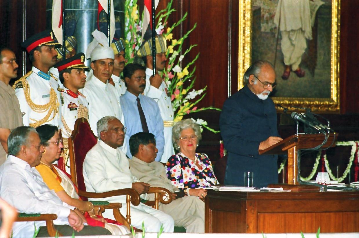 | Caption: | The President of India, Shri K R Narayanan at a Commemorative Function on the occasion of the Golden Jubilee of India's Independence in the Central Hall of the Parliament House in New Delhi on Aug 14, 1997 |