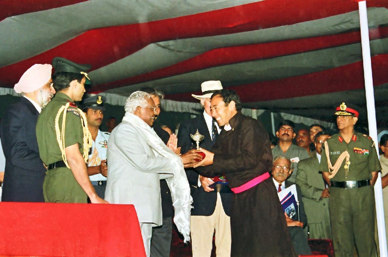 | Caption: | The President of India, Shri K R Narayanan witnessing the Final Match of the International Polo Tournament organised by the Indian Polo Association to commemorate the Fiftieth Anniversary of India's Independence at Jaipur Polo Ground in New Delhi on Oct 19, 1997 |