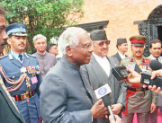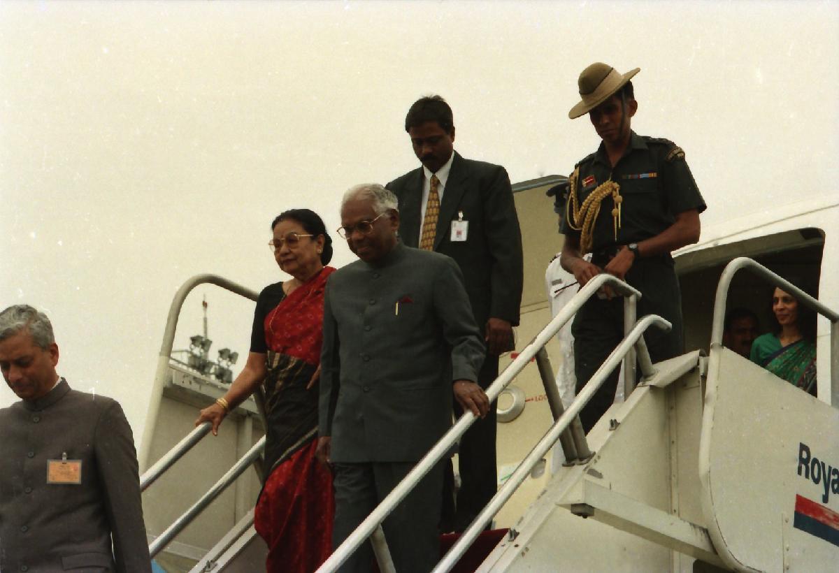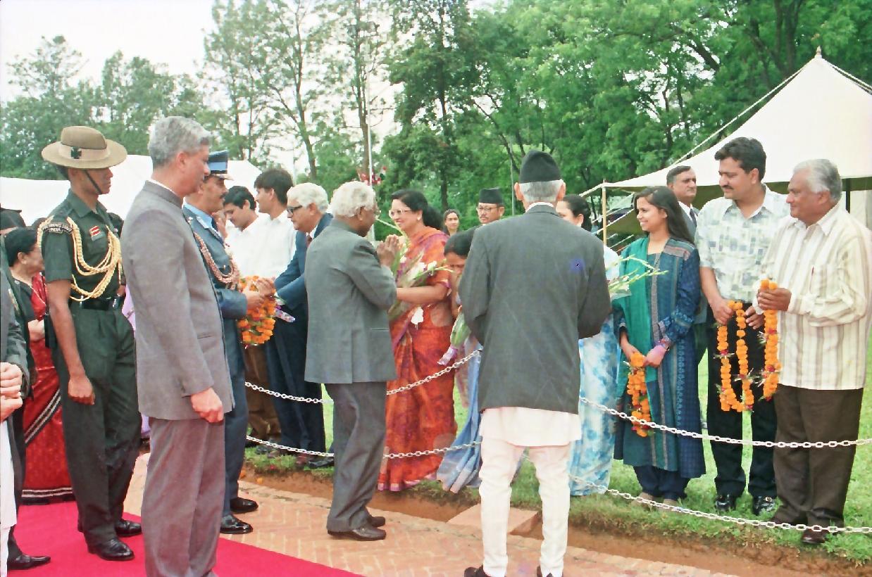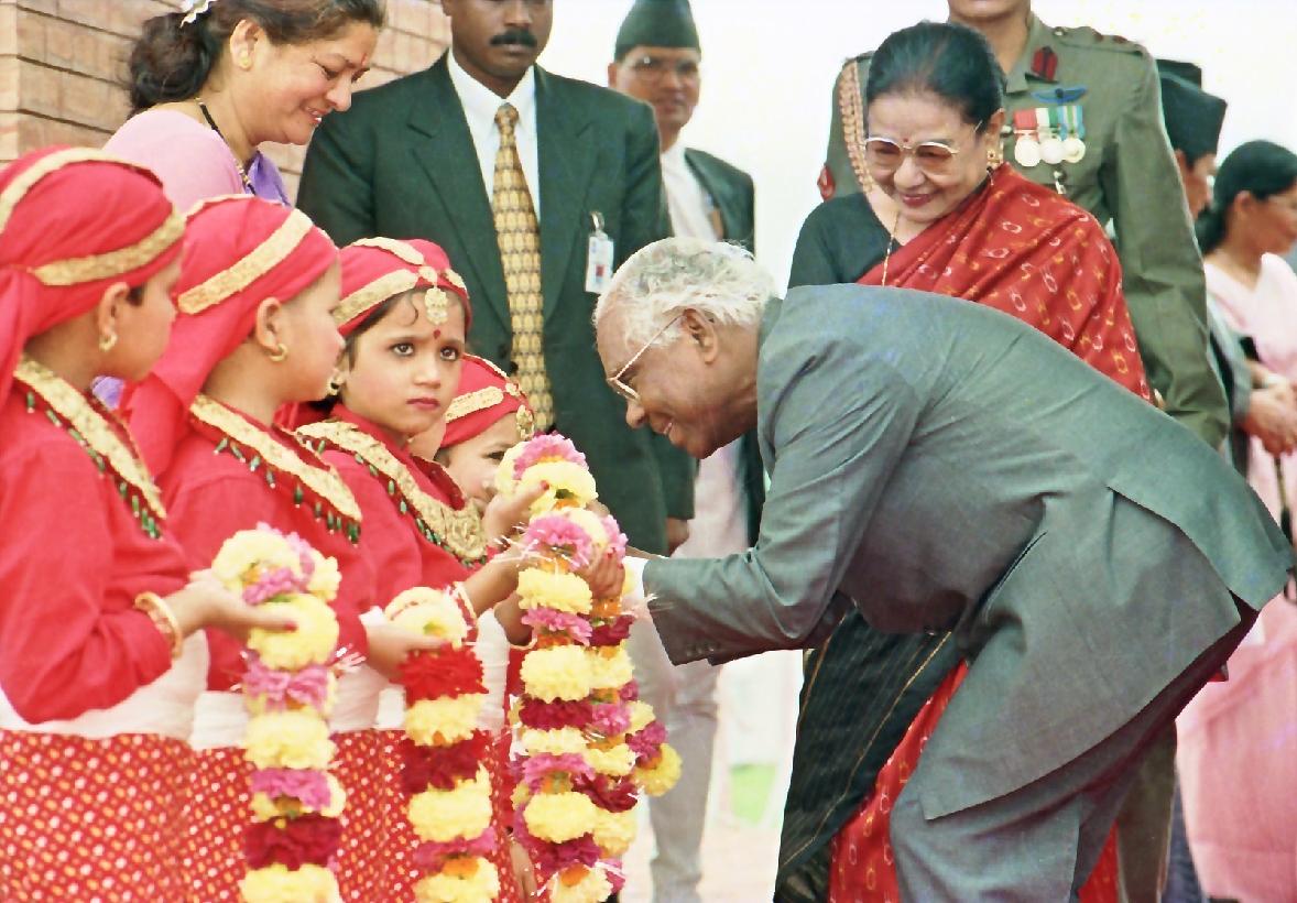 | Caption: | The President of India, Shri K R Narayanan being traditionally welcomed on his arrival at Tribhuvan International Airport at Kathmandu in Nepal on May 28, 1998 |