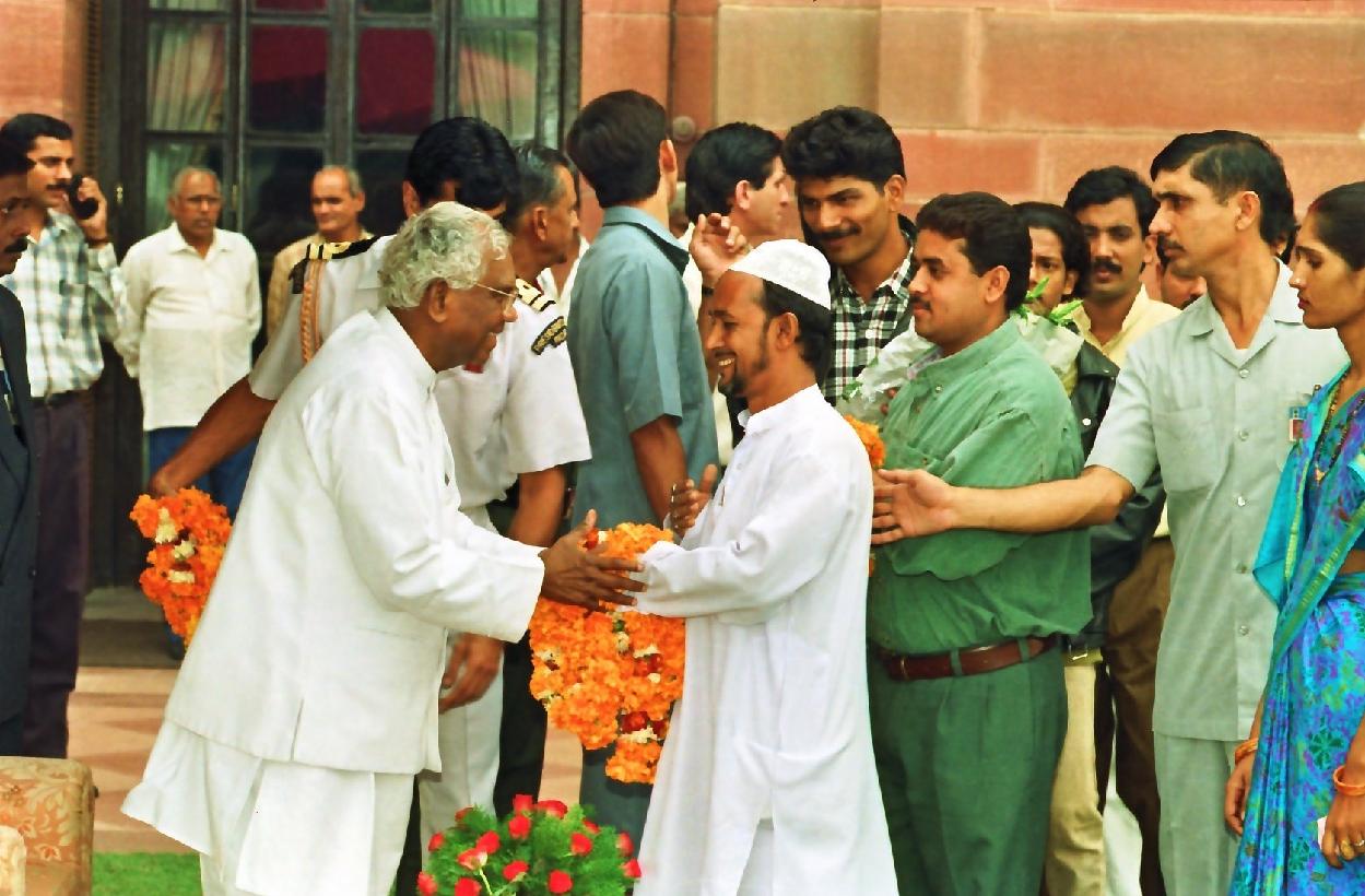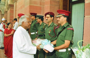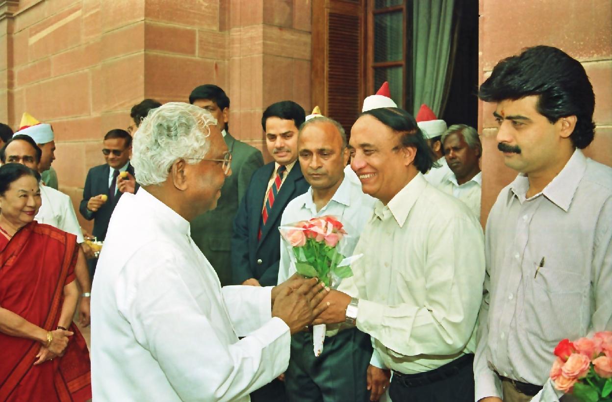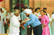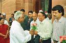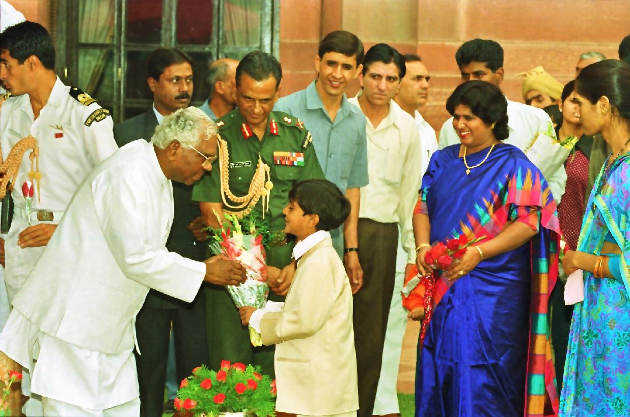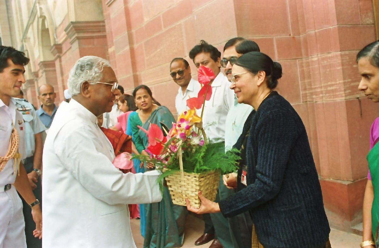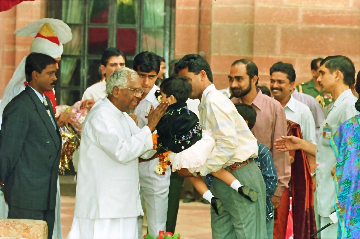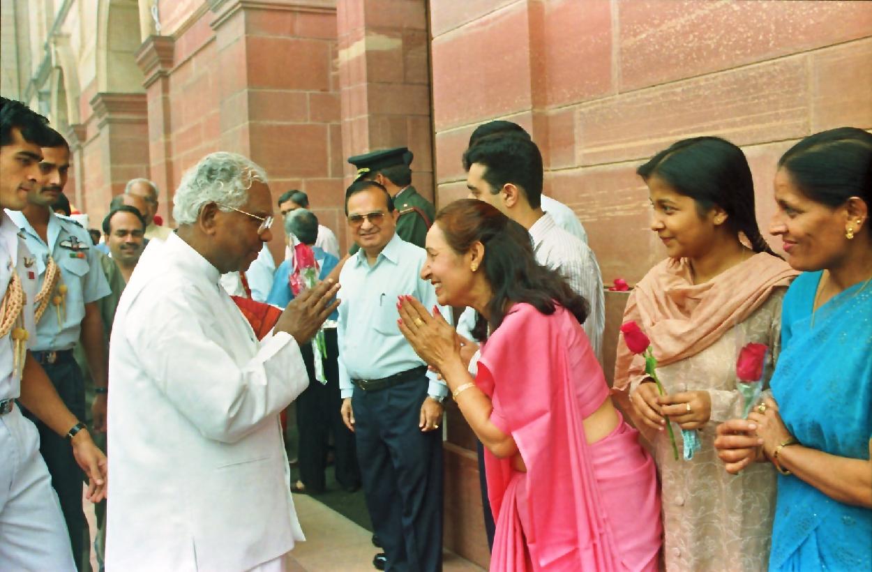 | Caption: | The President of India, Shri K R Narayanan receiving Greeting from the Officers Staff and their Families at Rashtrapati Bhavan in New Delhi on Oct 27, 1997 |