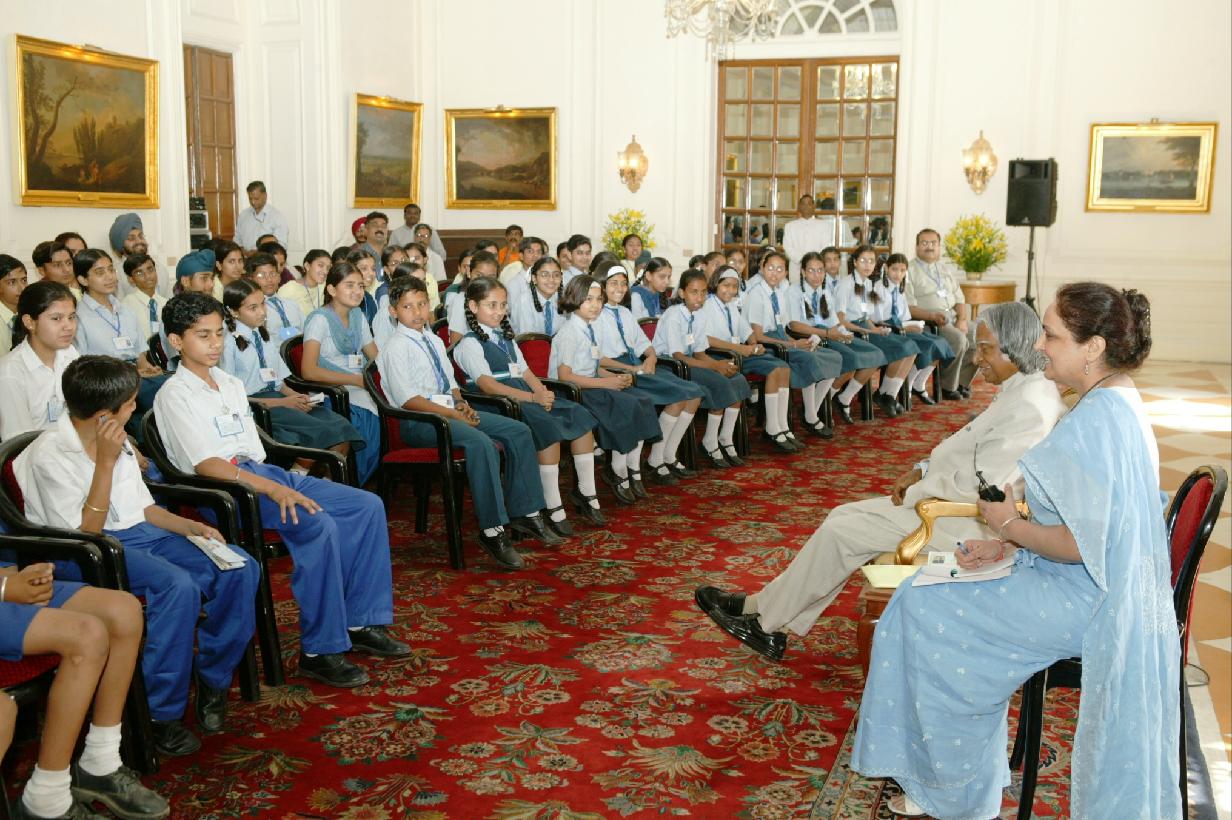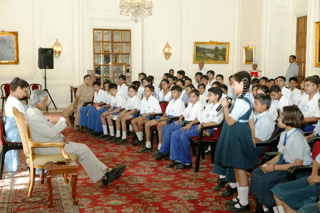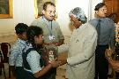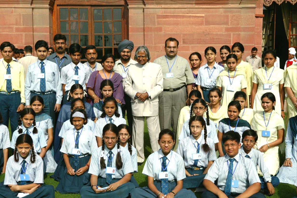 | Caption: | The Students from Aggarsain Public School Kurukshetra calling on the President of India, Dr A P J Abdul Kalam at the Yellow Drawing Room of Rashtrapati Bhavan in New Delhi on April 23, 2004 |