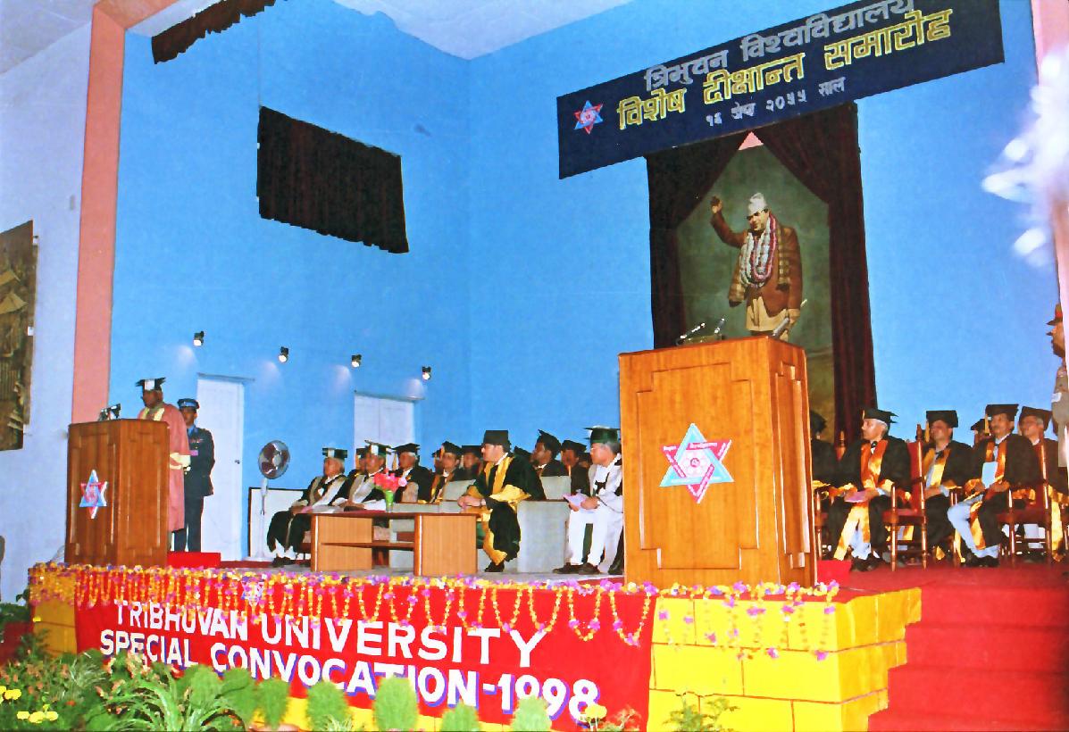 | Caption: | The President of India, Shri K R Narayanan being presented the Honorary Degree of the Doctor of Letters by the King of Nepal, HM Birendra Bir Bikram Shah Dev at Tribhuvan University Kirtipur in Nepal on May 30, 1998 |