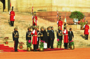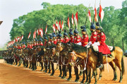 | Caption: | The PBG presenting the salute to the President of India, Shri K R Narayanan before leaving for the Republic Day Parade at the Forecourt of Rashtrapati Bhavan in New Delhi on Jan 26, 2002 |