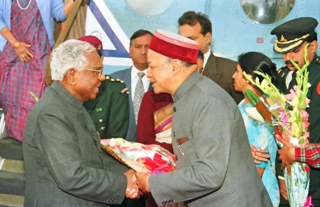 The President of India, Shri K R Narayanan arriving at Shimla in Himachal Pradesh on Oct 04, 1997