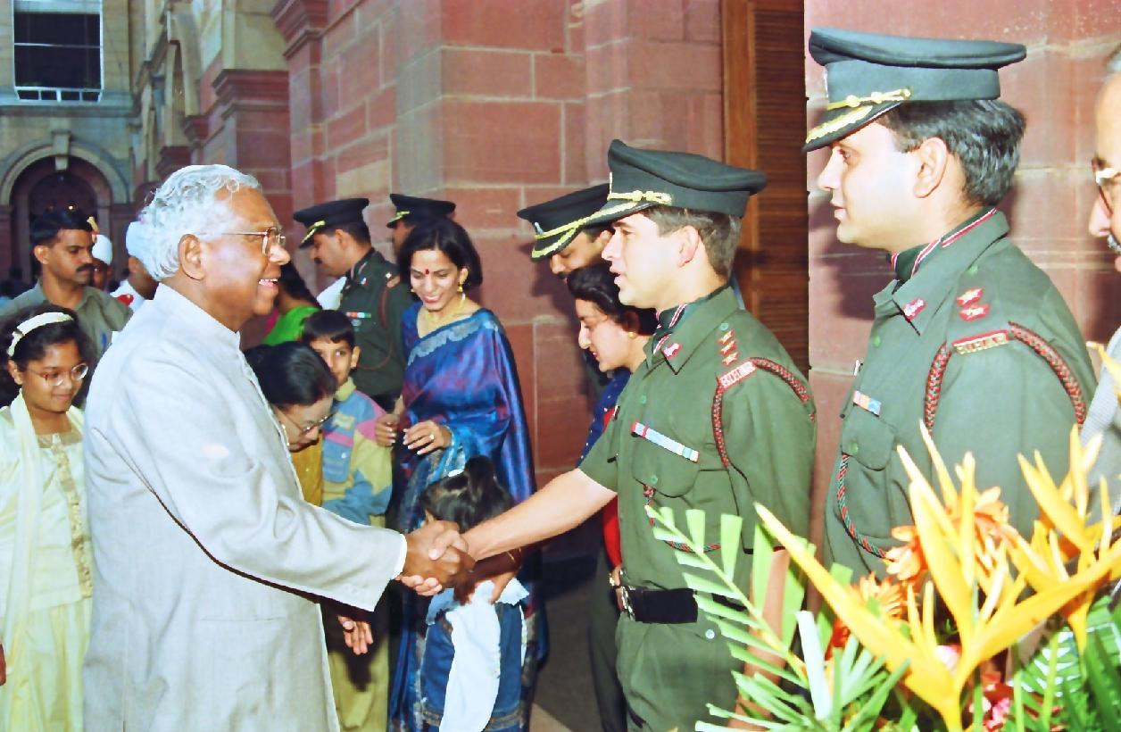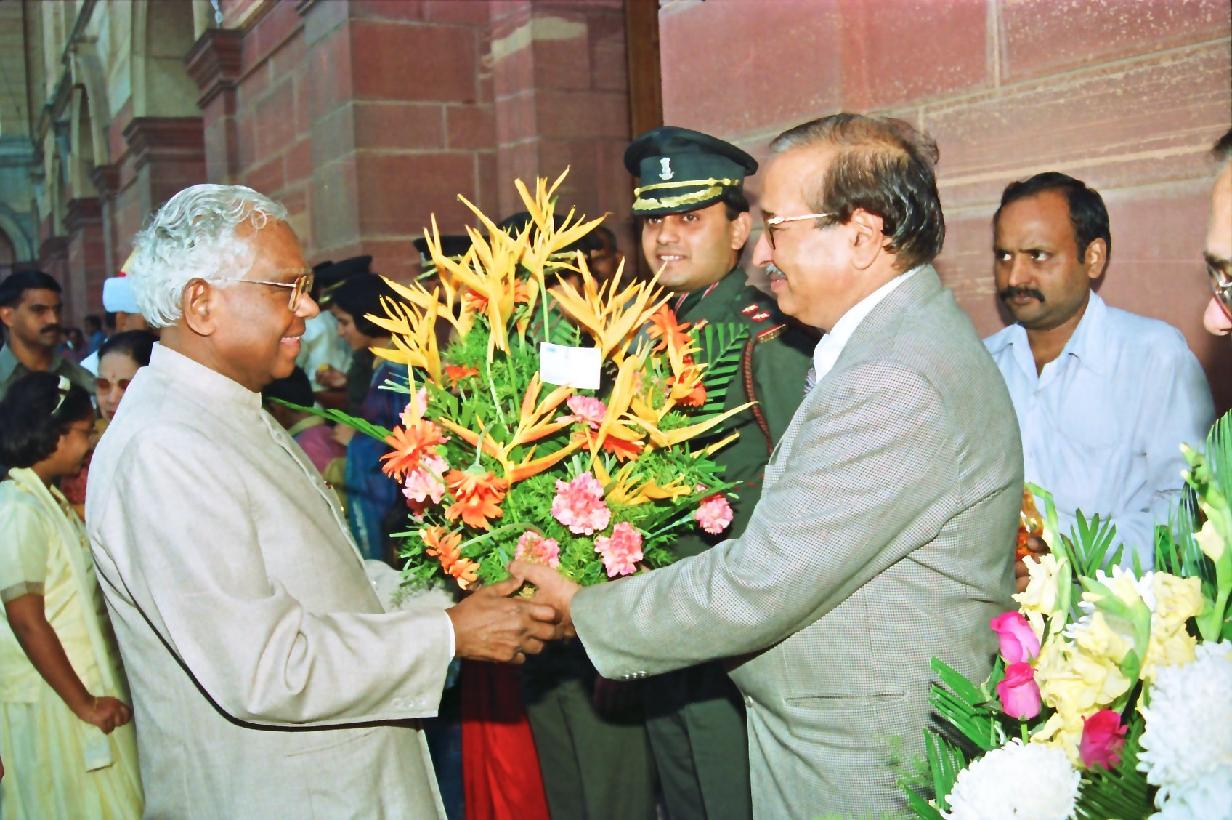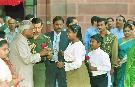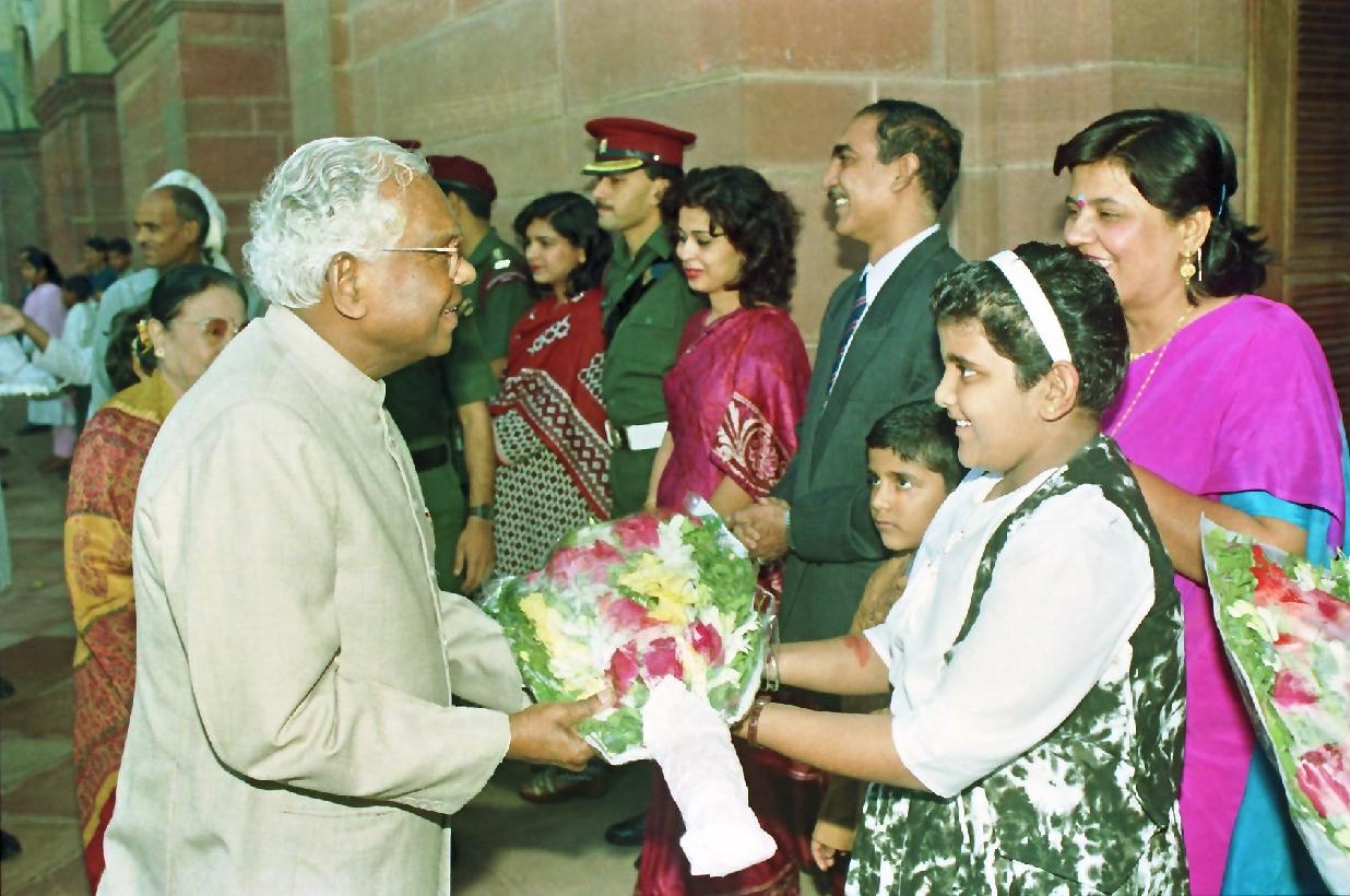| Caption: | The President of India, Shri K R Narayanan receiving Diwali Greetings from the Rashtrapati Bhavan Staff and their Families at the East Lawn of Rashtrapati Bhavan in New Delhi on Oct 30, 1997 |