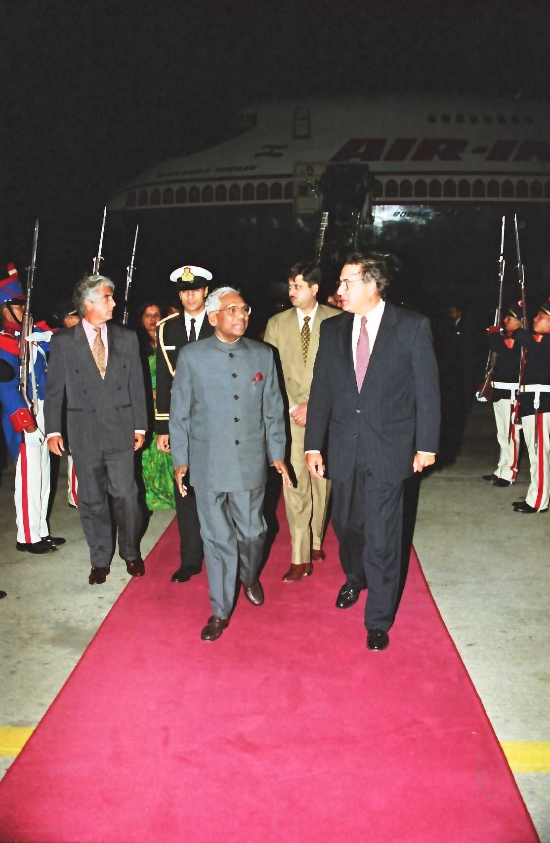 | Caption: | The President of India, Shri K R Narayanan being welcomed on his arrival at Air Force Base at Lima in Peru on April 29, 1998 |