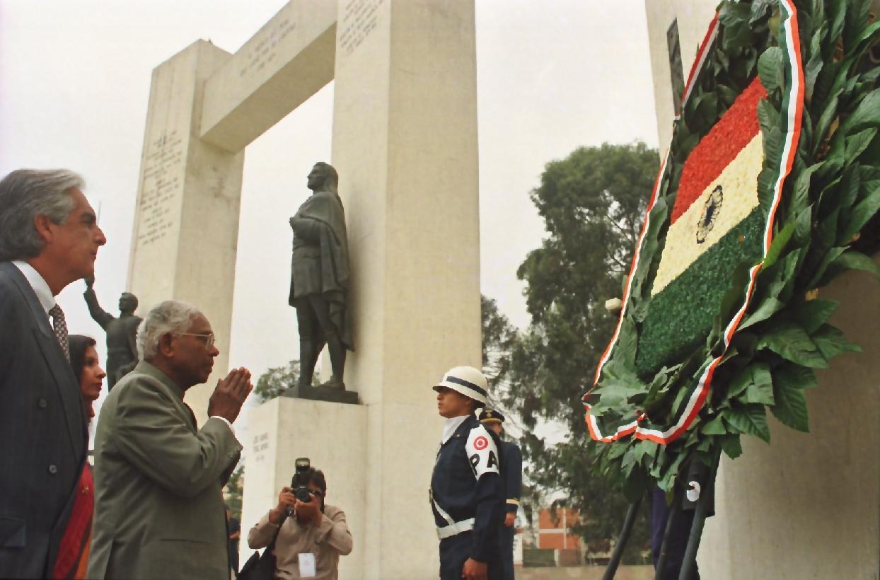 | Caption: | The President of India, Shri K R Narayanan laying wreath at National Independence Heroes Monument at Lima in Peru on April 30, 1998 |
