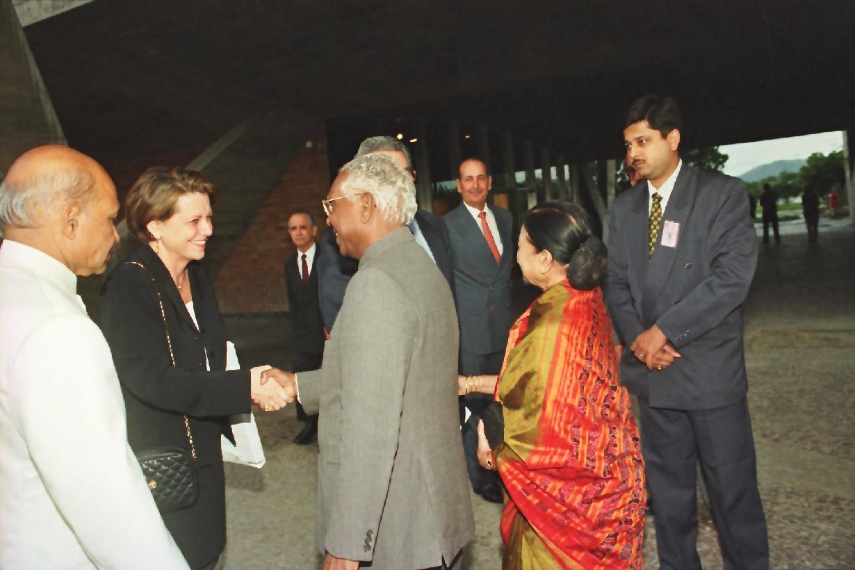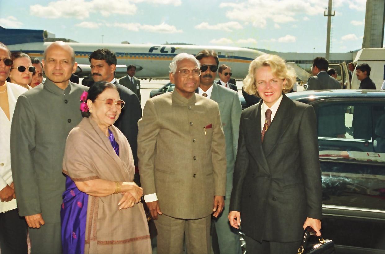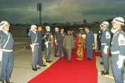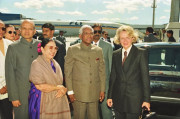 | Caption: | The President of India, Shri K R Narayanan being greeted on his Ceremonial Departure at Brasilia Airport in Brazil on May 06, 1998 |