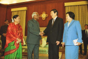 | Caption: | The Premier of the State Council of the People's Republic of China, HE Mr Zhu Rongji Premier and his wife Lao An calling on the President of India, Shri K R Narayanan at the North Drawing Room of Rashtrapati Bhavan in New Delhi on Jan 14, 2002 |