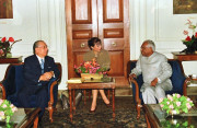 | Caption: | The President Soka Gokkai International Japan, Dr Daisaku Ikeda calling on the President of India, Shri K R Narayanan at the Morning Room of Rashtrapati Bhavan in New Delhi on Oct 22, 1997 |