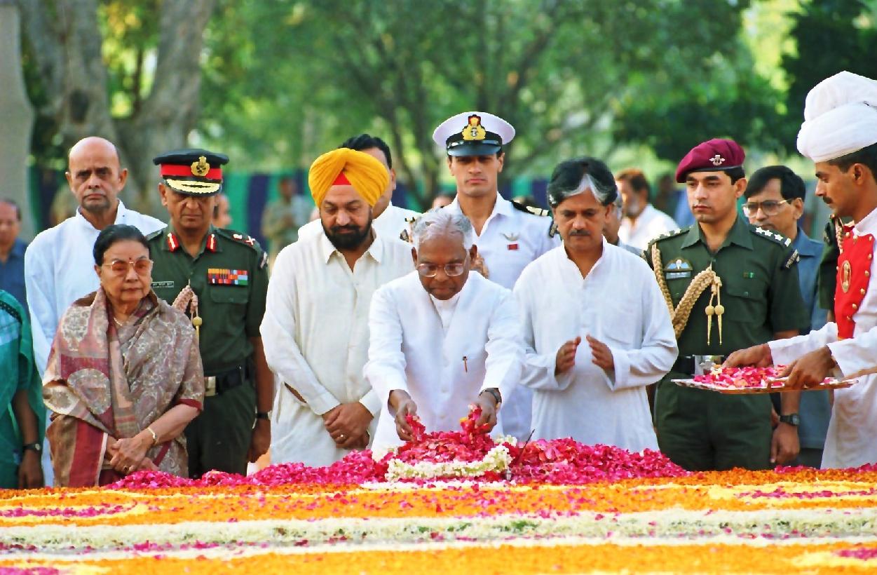 | Caption: | The President of India, Shri K R Narayanan paying homage at the Samadhi of the Prime Minister of India, Late Shri Lal Bahadur Shastri on the occasion of his Birth Anniversary at Vijay Ghat in New Delhi on Oct 02, 1997 |