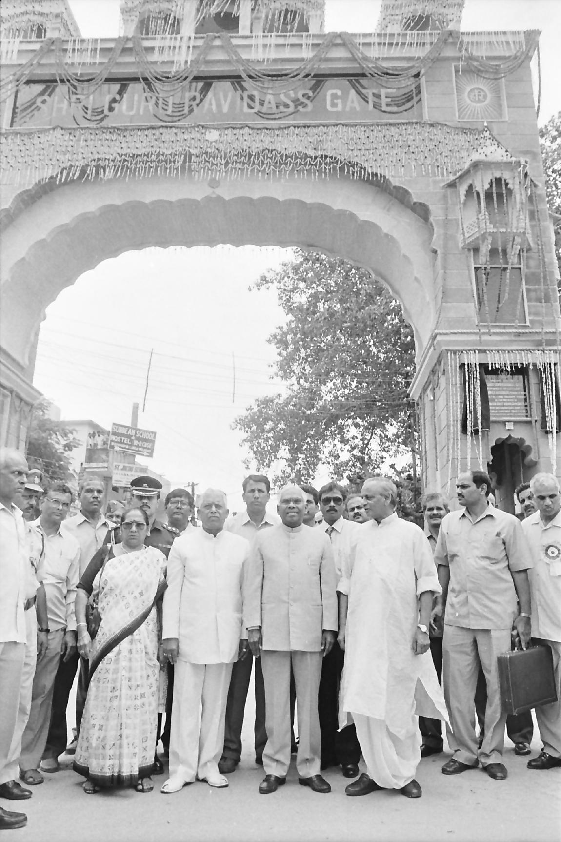 | Caption: | The President of India, Shri K R Narayanan unveiling the Plaque to inaugurate the Guru Ravidass Gate at Varanasi in Uttar Pradesh on July 16, 1998 |