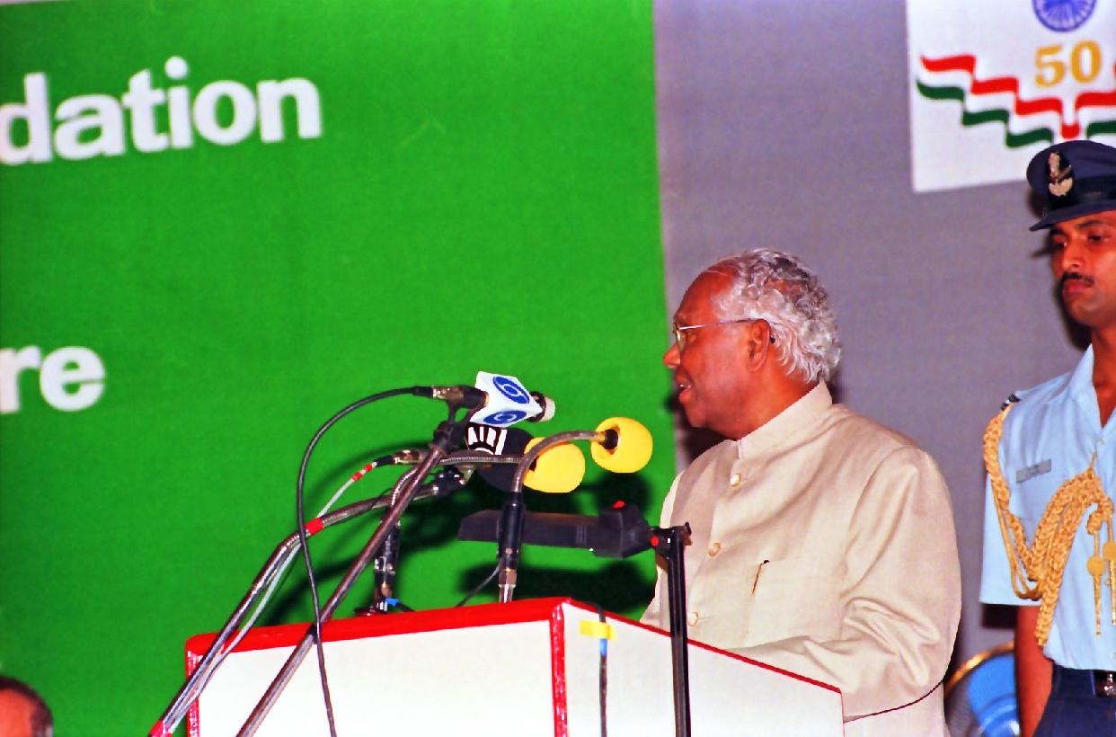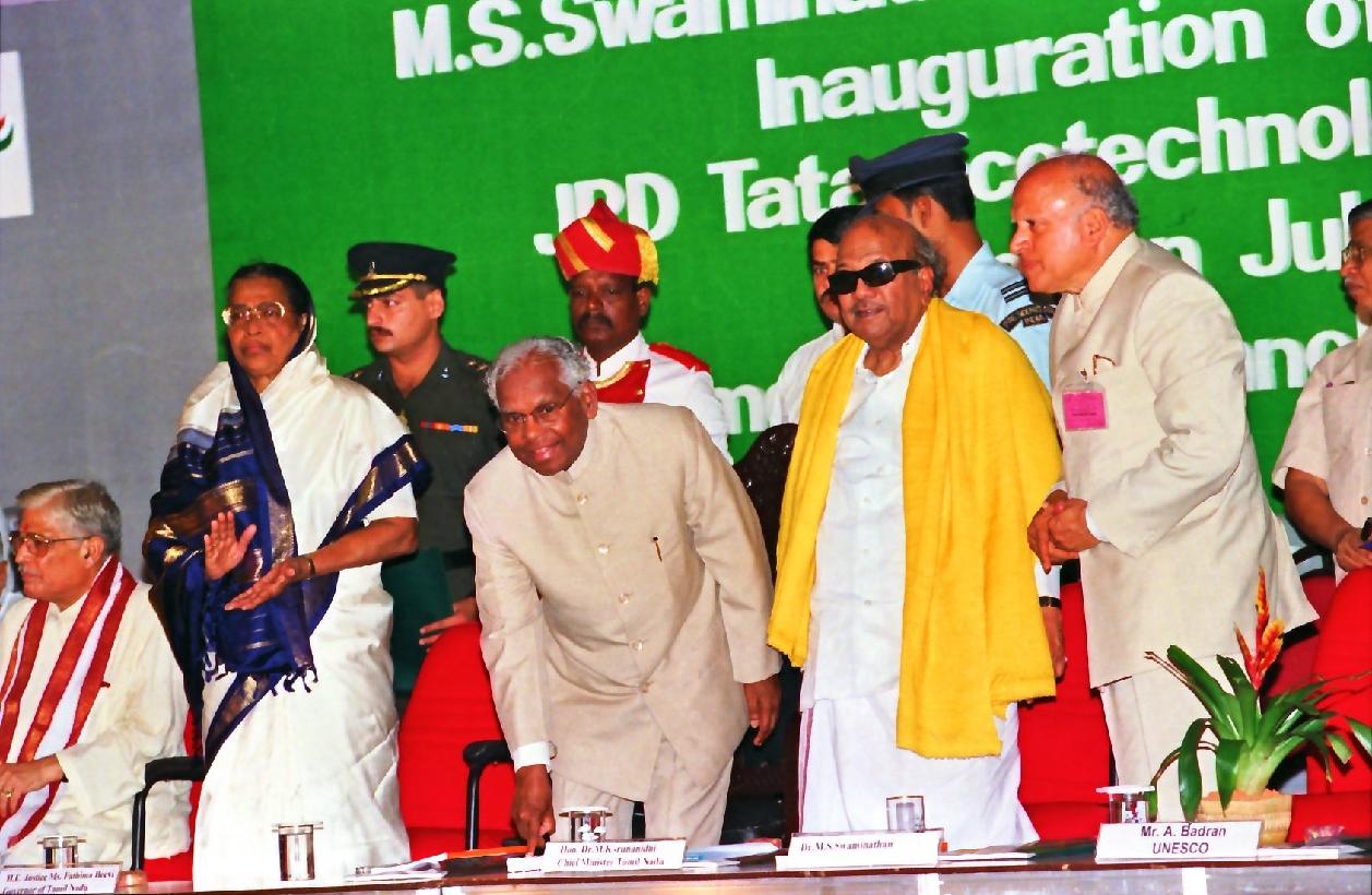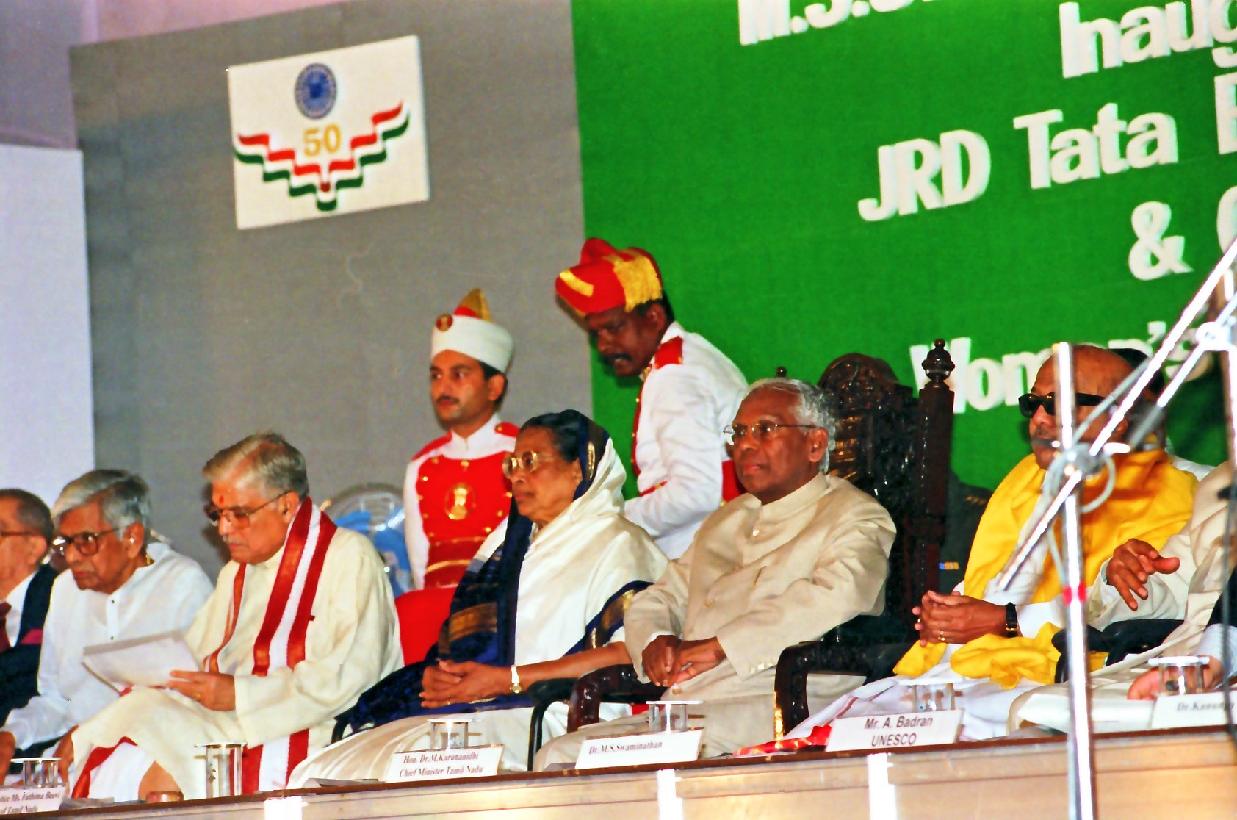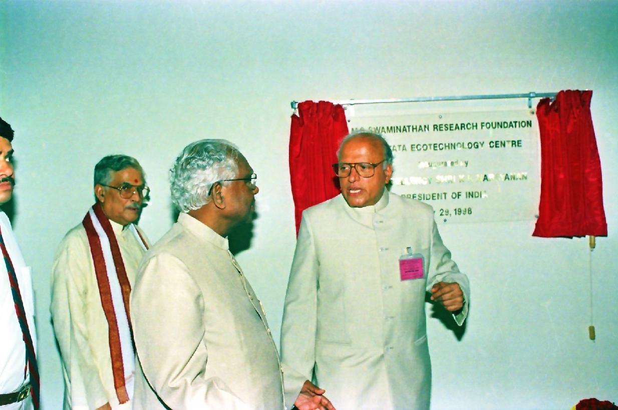 | Caption: | The President of India, Shri K R Narayanan unveiling the Plaque (by Pushing Button) to inaugurating the JRD TATA Ecotechnology Centre of the MS Swaminathan Research Foundation at Chennai in Tamil Nadu on July 29, 1998 |