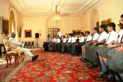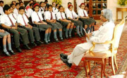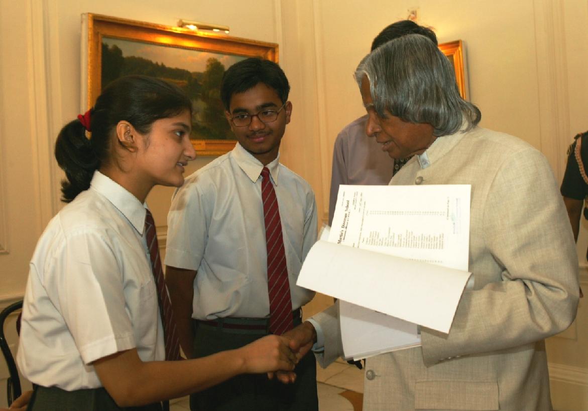 | Caption: | The Students from St Martin's Diocesan School Delhi calling on the President of India, Dr A P J Abdul Kalam at the Yellow Drawing Room of Rashtrapati Bhavan in New Delhi on April 27, 2004 |