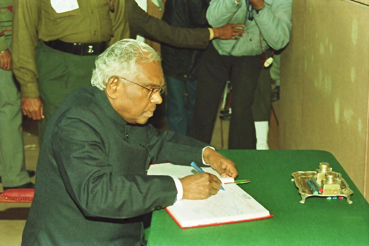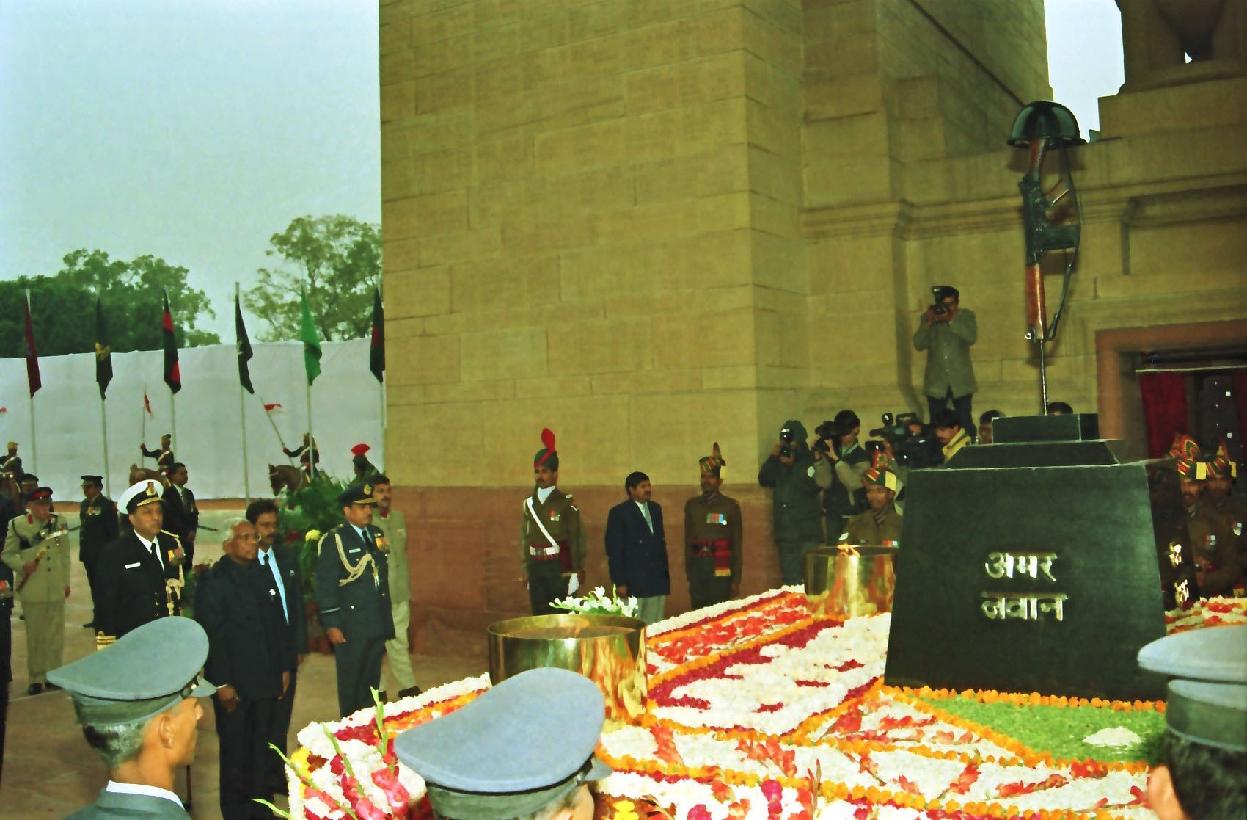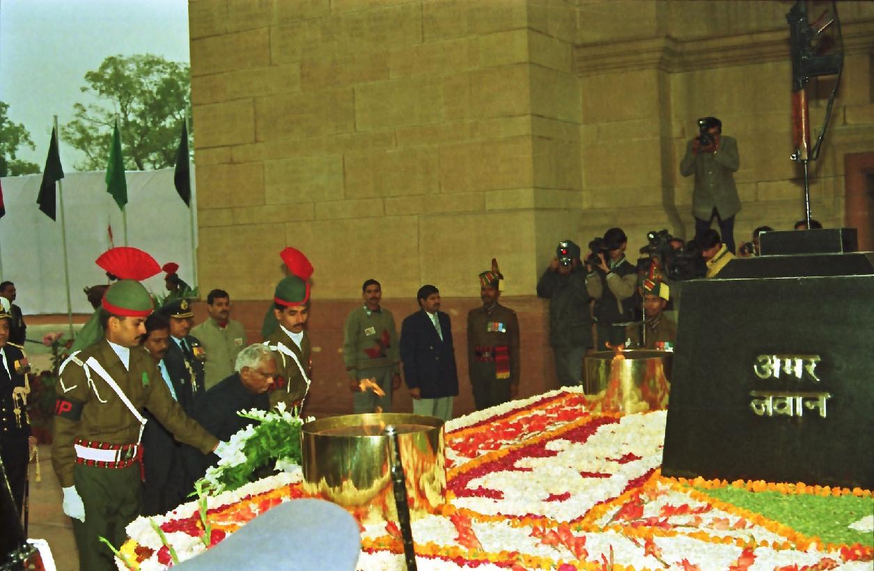 | Caption: | The President of India, Shri K R Narayanan laying a wreath at Amar Jawan Jyoti on Vijay Diwas at India Gate in New Delhi on Dec 16, 1997 |