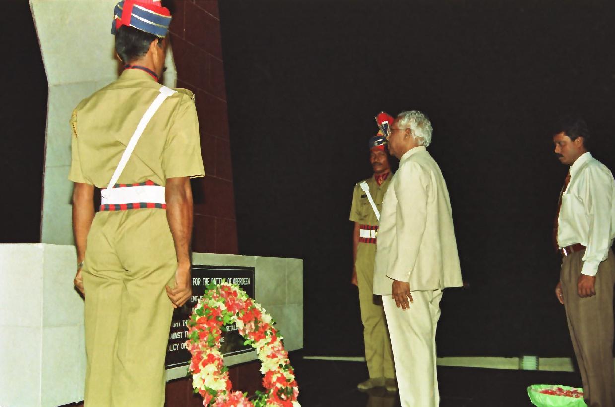 | Caption: | The President of India, Shri K R Narayanan laying wreath at Port Blair in Andaman and Nicobar on Dec 27, 1997 |