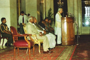 | Caption: | The President of India, Shri K R Narayanan during the Presentation of First Copy of the Book on Dr Zakir Husain titled Teacher who Became President Brought Out by the Indian Council for Cultural Relations at the Ashok Hall of Rashtrapati Bhavan in New Delhi on July 21, 2000 |