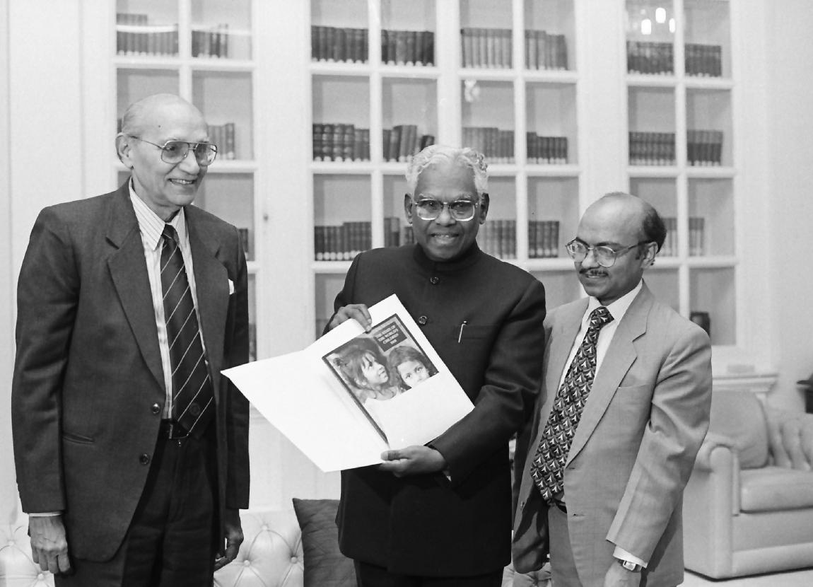 | Caption: | The President of India, Shri K R Narayanan meeting with the Special Representative of UNICEF in India, Mr Kul C Gautam and other to presenting the UNICEF Report on the State of World's Children (1998) at Rashtrapati Bhavan in New Delhi on Dec 17, 1997 |