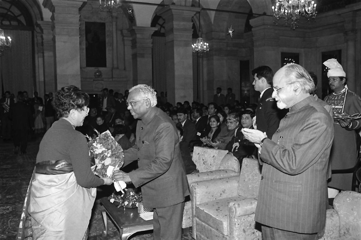 | Caption: | The President of India, Shri K R Narayanan meeting with the Christmas Carols at the Ashok Hall of Rashtrapati Bhavan in New Delhi on Dec 23, 1997 |