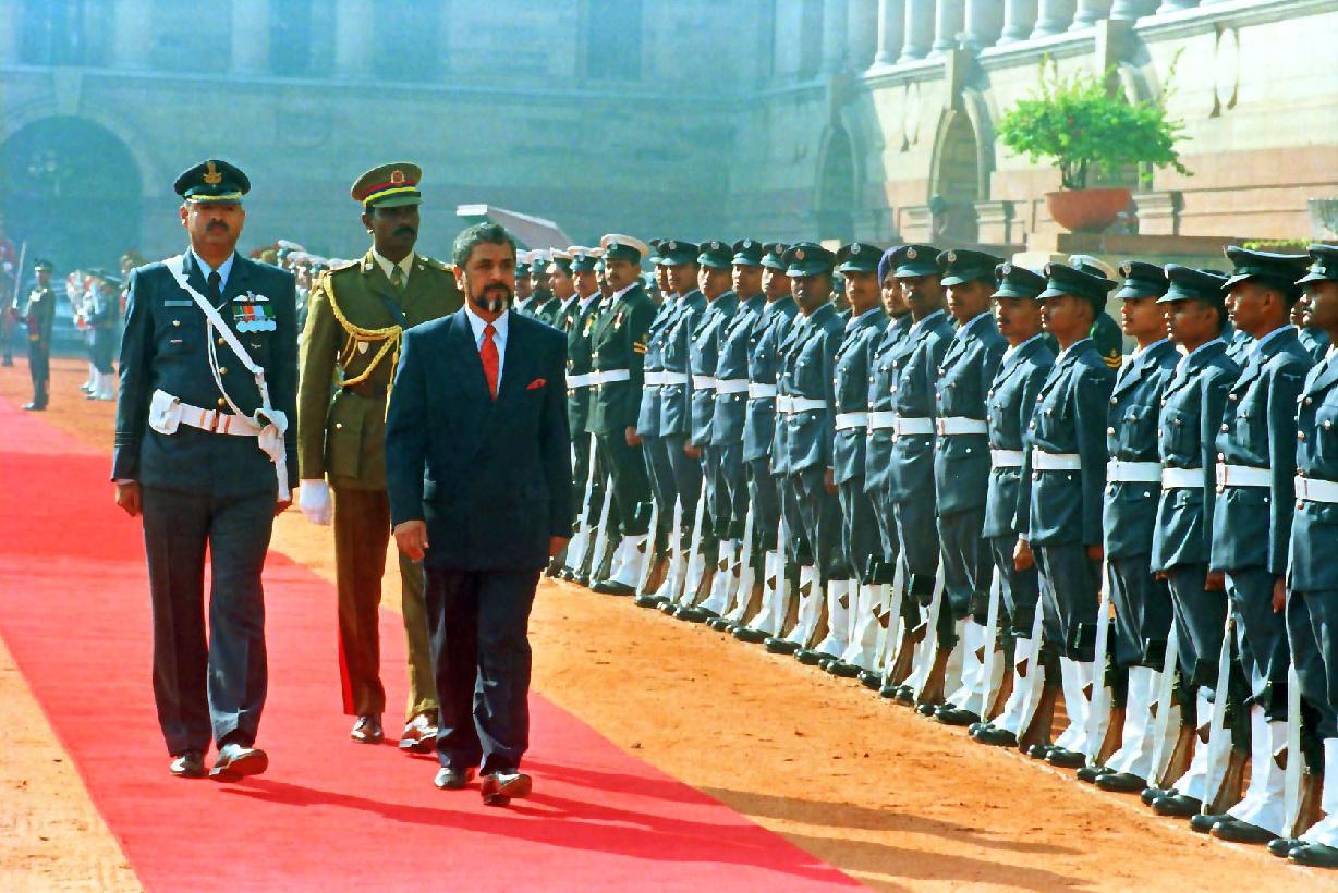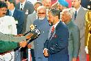 | Caption: | The President of India, Shri K R Narayanan at the Ceremonial Reception of President of Mauritius, HE Mr Cassam Uteem and his wife Mrs Zohra Uteem at the Forecourt of Rashtrapati Bhavan in New Delhi on Dec 02, 1997 |