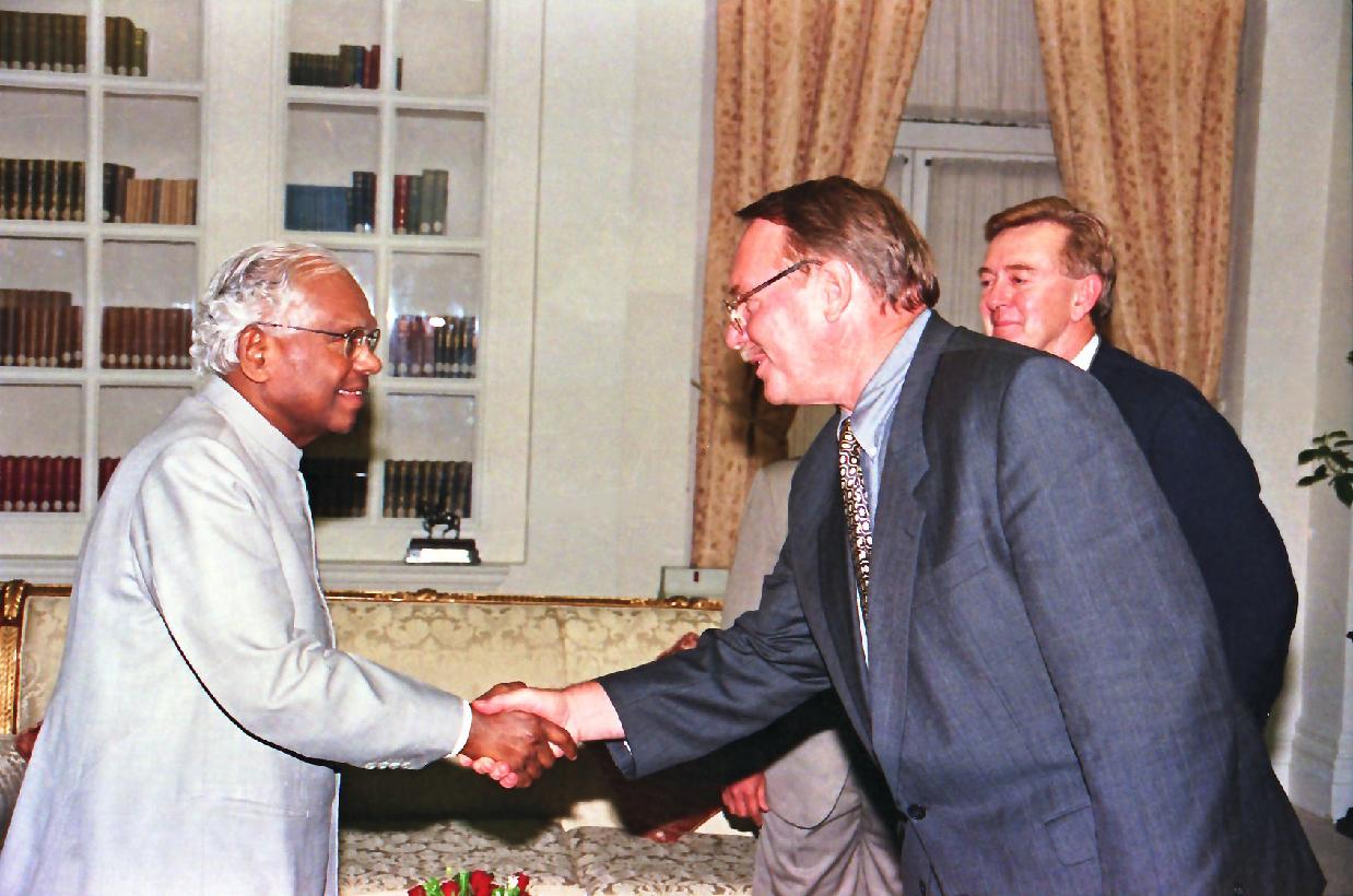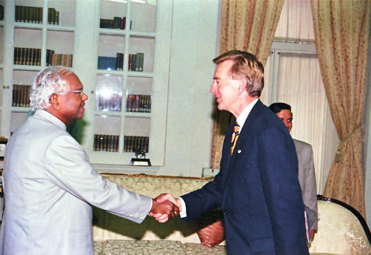 | Caption: | A Delegation from Canadian led by Mr Preston Manning calling on the President of India, Shri K R Narayanan at the Rashtrapati Bhavan in New Delhi on Aug 05, 1998 |