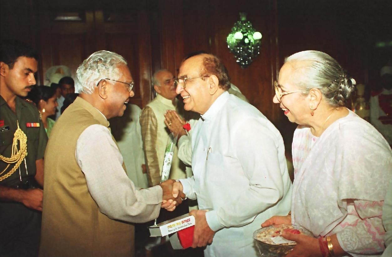 | Caption: | The President of India, Shri K R Narayanan receiving the Diwali Greetings from VIP's at Rashtrapati Bhavan in New Delhi on Oct 19, 1998 |