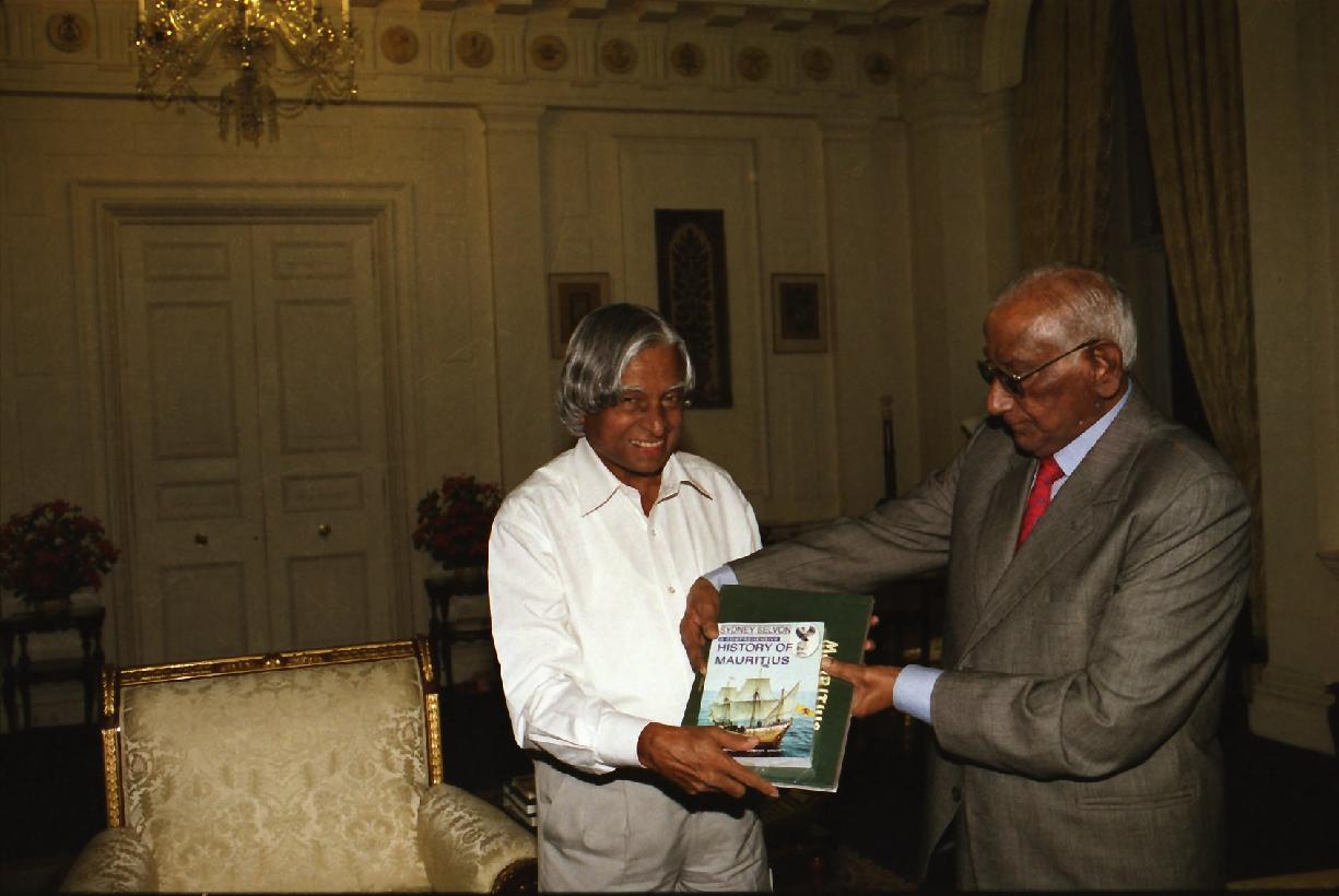 | Caption: | The President of India, Dr A P J Abdul Kalam with the Former Vice President of Mauritius, Mr A V Chettiar at Rashtrapati Bhavan in New Delhi on Sep 27, 2002 |